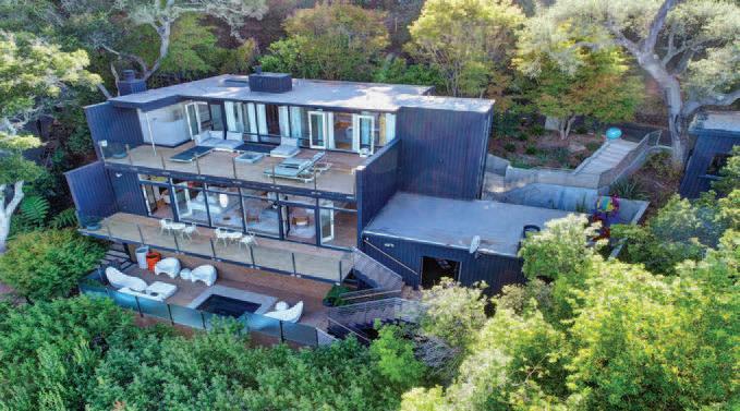 next door, this home o ers privacy to entertain and enjoy the Infi nity edge pool with custom pool house. The extensive foundation has cost over $4,500,000 so far. Completion is estimated for June 2023. Buying now would be able to choose fi nishes except the hand crafted stone decking from Spain and the intricate kitchen mill work from Germany are already ordered. AKA 1 Blanding Ln, Belvedere