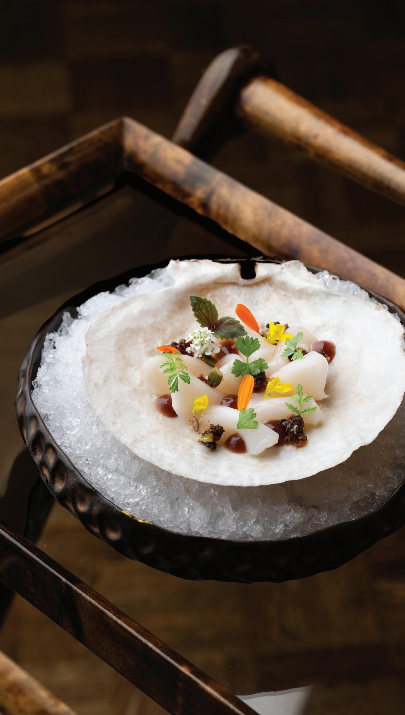 34 Famed restaurant Bar Crenn engages in culinary theater with food and beverage pairings par excellence in the Le Comptoir dining experience.