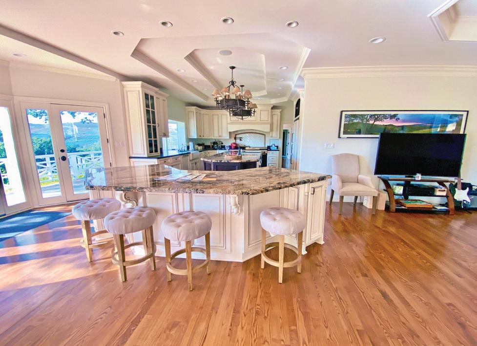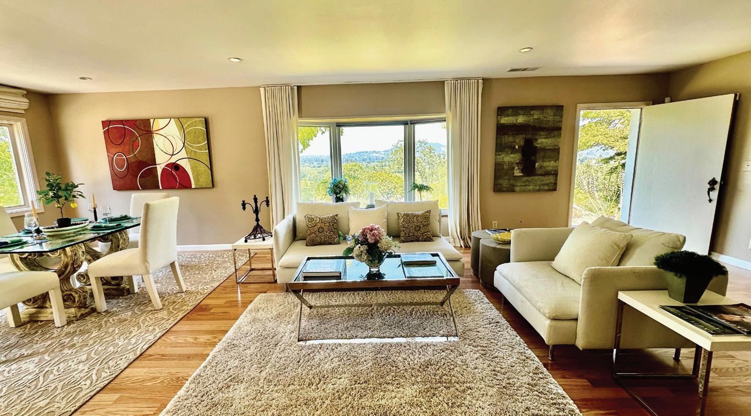 $29,995,000 Spring Mountain Vineyard Estate o ers an approximately 8,350 sq. ft. main residence, 1,615 sq ft main garage, 600 sq ft poolside guest house, 225 sq ft of covered patio, 475 sq ft temperature controlled wine room, 204 sq ft wine tasting room plus 600 sq ft second garage and additional 200 sq ft of covered patio and appx. 400 sq ft of covered outdoor kitchen with piazza oven and tasting bar, a total of appx. 12,500 sq ft under roof on an over 44-acre lot with panoramic Napa Valley views. This is an unparalleled opportunity to own a premier vineyard and home with breathtaking views, just five minutes’ drive from vibrant downtown St Helena.