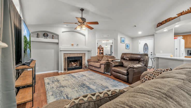 Built less than 5 years ago, this 4-bedroom, 3-bath home feels fresh, modern, and welcoming. A full guest suite downstairs offers comfort and privacy, while the open-concept kitchen, dining, and living area make gatherings easy and memorable. Upstairs, a versatile game room and peaceful owner’s retreat add to the thoughtful design, and outside, a covered patio overlooks the greenbelt.