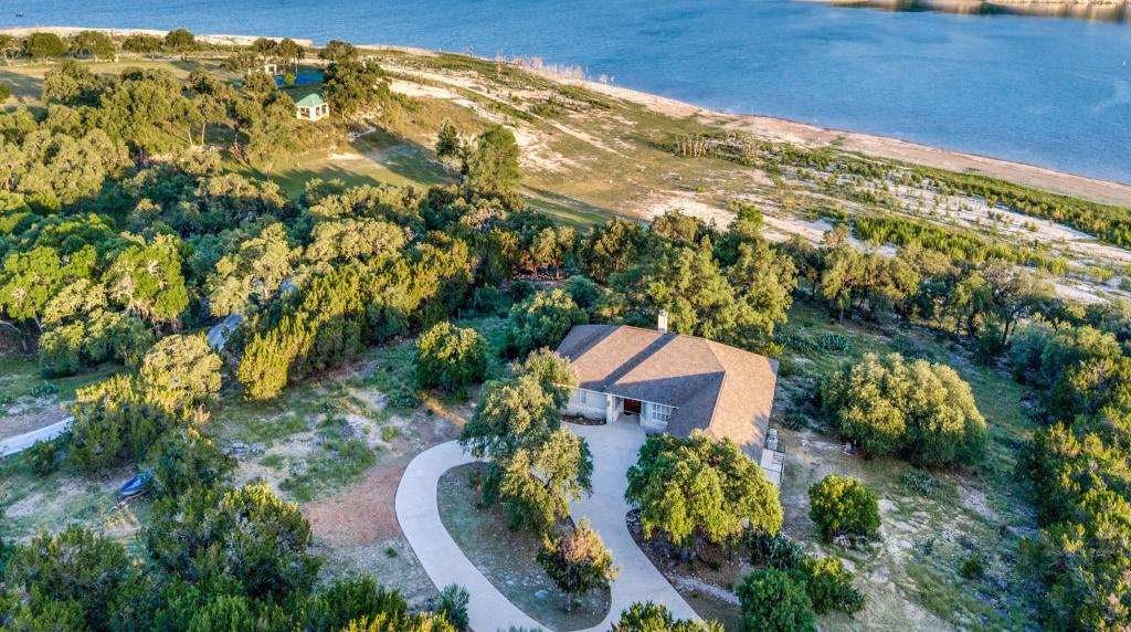 Luxurious Retreat Overlooking Lake Marble Falls Awaits You! Nestled on a sprawling 8.52-acre estate, this 3,167 square foot custom home is a masterpiece of design & privacy, offering unparalleled views of Lake Marble Falls, the Colorado River basin, & charming downtown Marble Falls. Designed for those who seek serenity and privacy, this property is ingeniously integrated into the hillside, providing a secluded oasis that is truly one-of-a-kind. As you enter this magnificent residence, you are greeted by an atmosphere of sophisticated luxury. The upper level serves as the heart of the home, featuring the exquisite primary suite, a formal dining room, a splendid breakfast nook, and a large open living area complete with a cozy stone fireplace. $1,495,000 | 3 BEDS | 4 BATHS | 3,167 SQ FT