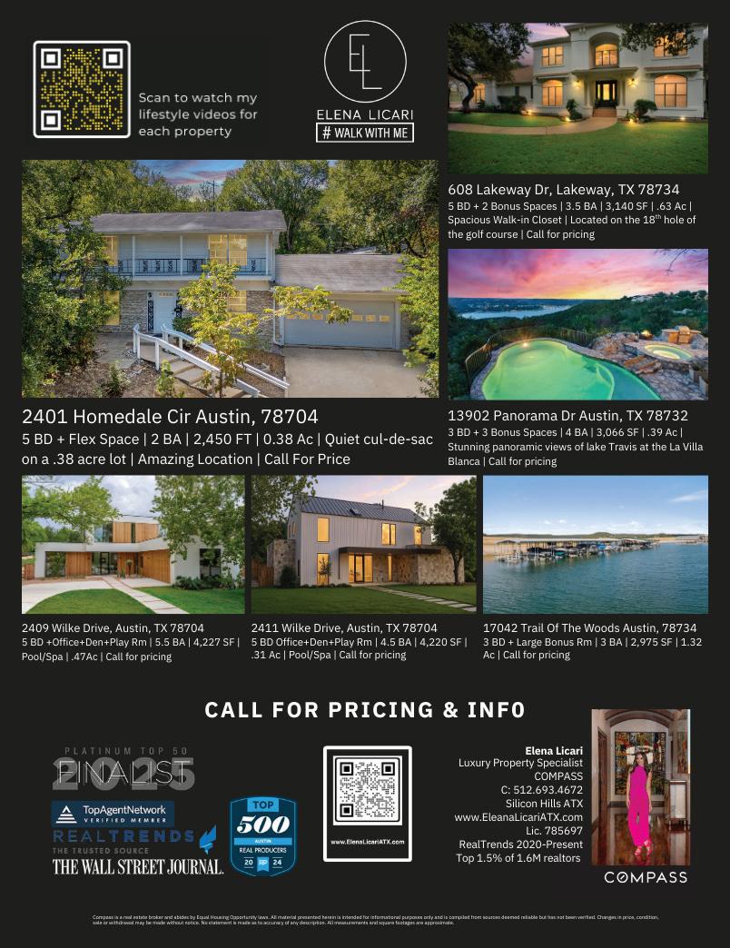 Heres a rare find! A 3,795 sq ft home on a 3-acre (+/-) estate lot with amazing privacy and beautiful landscaping. Its in the Eanes ISD and is only 25 minutes to the airport and 30 minutes to the Capitol. No city taxes. No HOA. The tax rate is only 1.4956%. Whats not to love? Many parties and other events have enjoyed this home. It has a beautiful swimming pool and has just been re-tiled and plastered (3/2025). Enjoy the 30x16 covered patio where lots of food, drink, and laughter has taken place. Walk through the front door and you will see the whole way through the family room to a wall of windows to the backyard. The inside is a wonderful space of high ceilings, crown molding and large windows. The large island kitchen opens to the family room. You will enjoy the stainless appliances, double oven, microwave, gas cooktop and even a wine refrigerator. The formal dining has room for a table of ten. The family room is all about relaxation. It has a Chicago brick fireplace. Wood burning or gas logs. Nice built-in bookshelves and cabinets. The downstairs master is quite large and has access to the patio. The master bath has a soaking tub, double vanity, a large walk-in shower, and an 18-foot walk-in closet. Mosey upstairs and you will find the 4th bedroom, full bathroom and a large game room/ media room. Perfect for a teenager or other friend or family member. All new flooring was installed throughout the home in March 2025. The best feature of the home is privacy and landscaping. Crepe Myrtles, palm trees and a lot of oaks. Outstanding sunsets, especially in the fall will put you in your happy place. Finally, do you see that cottage in the backyard? Its a shed gone crazy! It has electricity, a side garage door, and two skylights that turn the shed into a greenhouse to store the winter plants. There is also a water source right outside, so you have all of the elements to turn this shed into a cool casita!