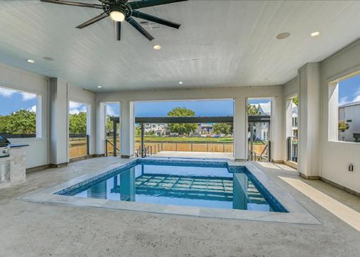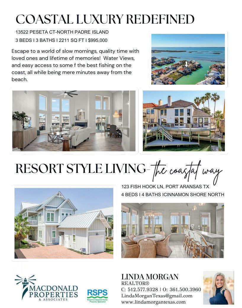 BEST PRICED Waterfront Home in Island Moorings...CALLING ALL BUYERS! This is your chance to own a waterfront coastal masterpiece in one of Port Aransas’s most prestigious, coveted and well-established waterfront communities. YES, you read that right, this stunning 2-story retreat is priced to move and packed with features that make it the ultimate getaway from city life. Whether you’re a seasoned angler or a weekend beachcomber, this home delivers the lifestyle you’ve been dreaming of. With 60’ of waterfrontage, your private dock offers ample space for both bay and offshore boats. Even a fish cleaning station. After a day on the water or soaking up the sun at the beach, unwind in your heated saltwater pool, complete with privacy curtains and shaded for soaking and lounging. The outdoor space is designed for entertaining, relaxing and enjoying the coastal breeze yearround. Step inside to a dramatic open-concept floor plan with soaring ceiling and a show-stopping staircase. Walls of highimpact glass windows and doors flood the home with natural light and water views from nearly every room. A cozy gas fireplace anchors the living space, perfect for cooler coastal evenings. The chef’s kitchen is a dream come true, featuring striking black granite countertops, gas cooking, stainless steel appliance and a built-in Sub-Zero refrigerator. Just off the dining area, you’ll find a beverage bar with a wine fridge & built-in espresso machineideal for entertaining or enjoying quiet mornings. The main-floor primary suite is a luxurious retreat, boasting a spa-like bath with custom vanity. Upstairs, 2-spacious suites feature ensuite baths, and a flex space offers versatility for a home office, gym or additional bedroom. Recent upgrades include a NEW 2025 high-end Mediterranean style Tilcor Spanish tile-style roof and Senox seamless rain guttering system. Amenities are way TOO numerous to list here. Come Coast Awhile......at this waterfront gem in Island Moorings TODAY!
