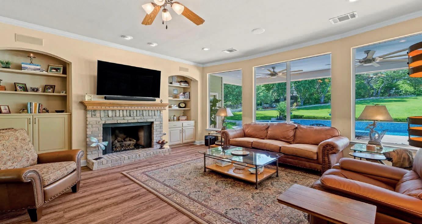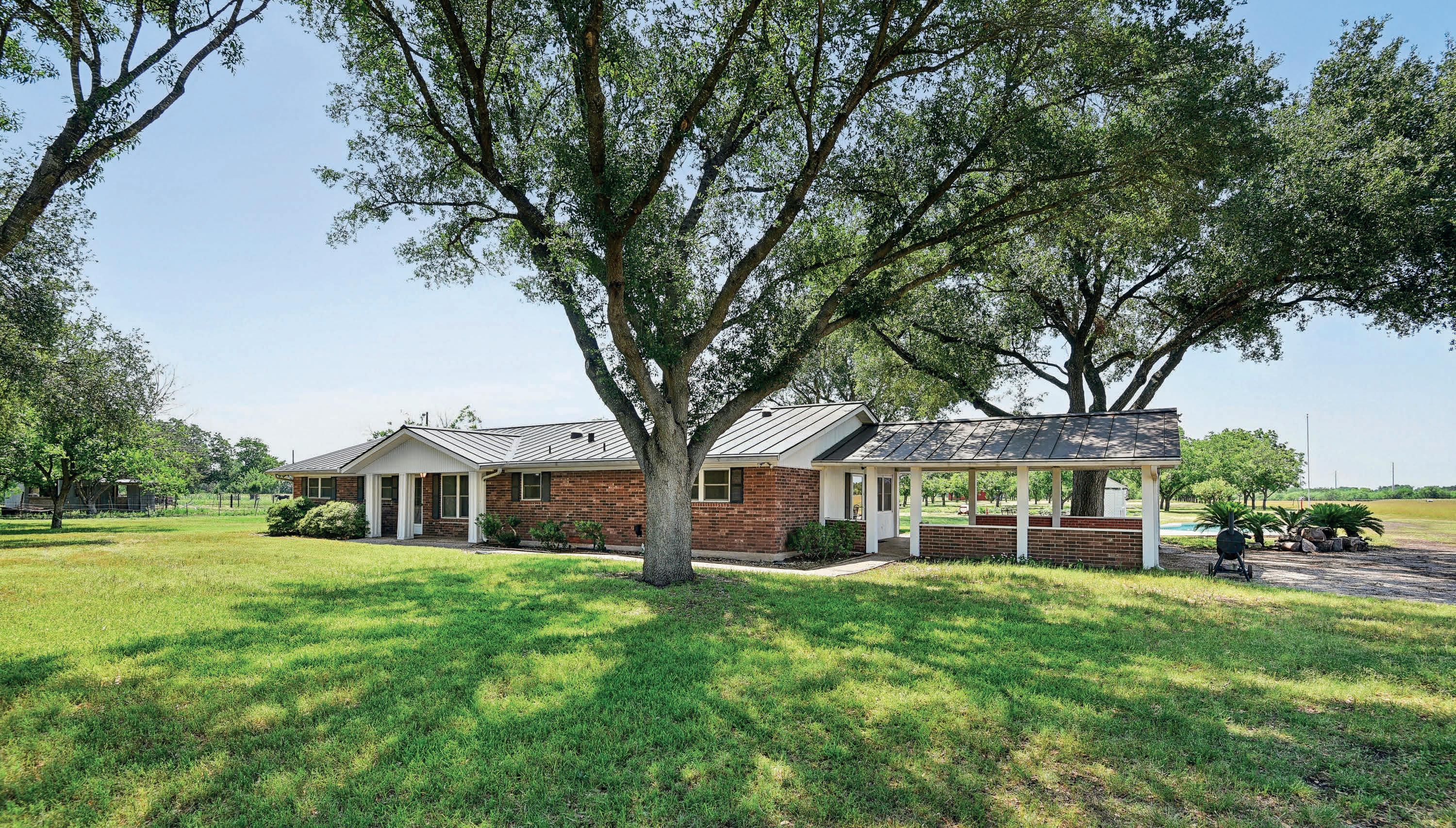 3 BEDS | 2 BATHS | 2,485 SQ FT | $900,000. Experience the perfect blend of tranquil country living and easy access to vibrant city amenities with this gated 10-acre pecan orchard estate! With 200 mature, producing pecan trees supported by an in-ground irrigation system, this property offers both beauty and income potential. The charming brick home features 3 bedrooms, 2 full bathrooms and 2 living areas complemented by extensive built-in shelving for ample storage, as well as an office area for running your new pecan business. The formal living area features a cozy wood burning fireplace and a beautiful custom-built gun cabinet. A large game room with a built-in bar area is perfect for hosting get togethers, pool tournaments, or just relaxing with family. Unwind by the sparkling pool, surrounded by lush orchard views. The property includes a large 30x40 shop with roll-up doors, two 3-sided storage barns, and an irrigation pond/stock tank. All orchard equipment is included, ensuring a seamless start to your agricultural venture. Just a short drive from nearby cities brimming with dining, shopping, and entertainment, this beautiful property offers the best of both worlds!