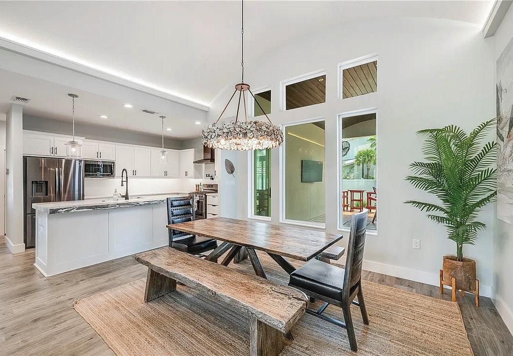 144 La Joya is a like new, single level home in the gated waterfront subdivision of La Joya de Island Moorings. This three-bedroom, two-and-ahalf-bathroom home blends Spanish-style architecture with modern touches, offering the perfect balance of charm and elegance. This home includes a 50 FOOT BOAT SLIP with shore power, so bring your BIG boat! Enjoy the neighborhood’s waterfront pool, gathering area, and palapa— perfect for relaxing with friends and neighbors in a resort-style setting. The exterior offers a stucco finish with classic tile roof, pavestone driveway, contemporary front door, a covered patio with outdoor bar and turf grass & native plants for low to no maintenance. Inside, you’ll find the finest in finishes with plantation shutters, custom cabinetry and stone counters, poured concrete counters, custom light fixtures and accents, built in shelving, a bar with icemaker, arched ceilings, sliding barn doors, and so much more. The oversized two-car garage with dual doors offers convenience and storage. This home is being sold fully and tastefully furnished, including décor, so just bring your suitcase and start enjoying coastal living from day one. This home offers waterfront lifestyle and a boat slip, so whether you’re seeking a weekend escape or a full-time home, this location will suit you. Custom built in 2020 by Kypke Construction with no expense spared and only lightly used since then, this home is a real opportunity for someone planning to build. Save yourself the time, hassle and some money and start using this lovely place on day one!