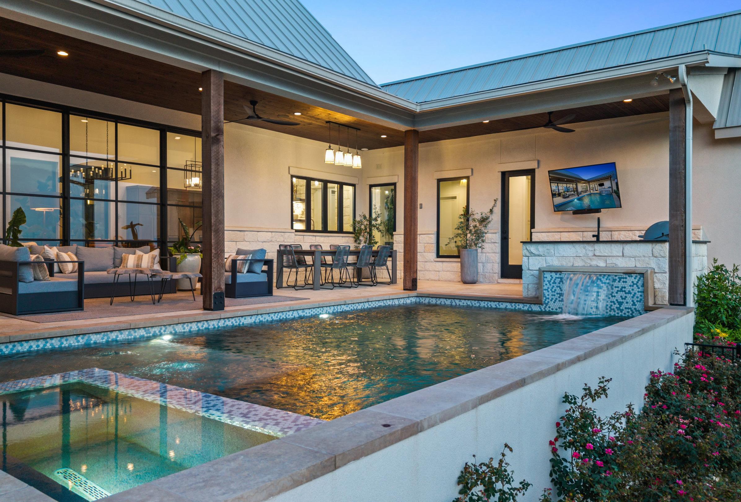 Enjoy the modern Texas Hill Country life at this amazing custom built luxury home in the esteemed, gated, Tierra Vista Community in Spicewood, Texas near Willie Nelson’s Luck Ranch! The thoughtful and meticulous designed upgrades impress throughout this sprawling and rare 3,638 sq. ft. single story featuring 4 spacious bedrooms & baths, a dedicated office, and game room. The primary suite features Restoration Hardware lighting, vaulted ceiling and high-end special touches! A custom pool and spa off the back patio with panoramic, hill country & sunset views is the icing on the cake! Fabulous Iron entry and great room doors, Anderson windows, designer lighting and numerous additional upgrades enjoyed throughout the home! Window treatments, water softener, reverse osmosis system, GE Luxury line of appliances with rose gold handles, quartzite kitchen counters make cooking a thrill and double dishwashers making cleaning up a breeze! Step outside and enjoy the built in custom outdoor kitchen overlooking the pool, Pedernales River and surrounding hill country. Minutes from Lake Travis premier Pace Bend Park with deep water boat ramps, scenic hiking & biking trails, Briarcliff full service marina, luxury shopping and dining, the area favorite Lake Travis ISD schools. Look no further and schedule a showing today. We look forward to hearing from you. Approx. 45 minutes to DT Austin & the airport.