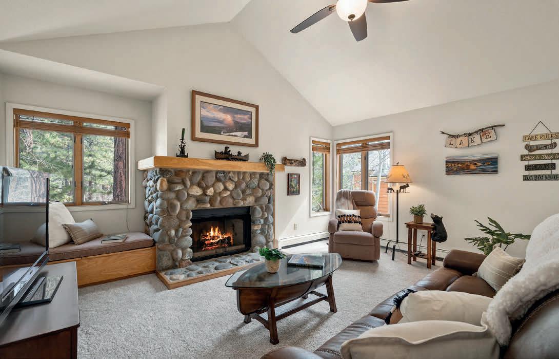 Tahoe design. Walk to the beach from this quiet remodeled 3 bed 2 bath condo. Cathedral ceilings