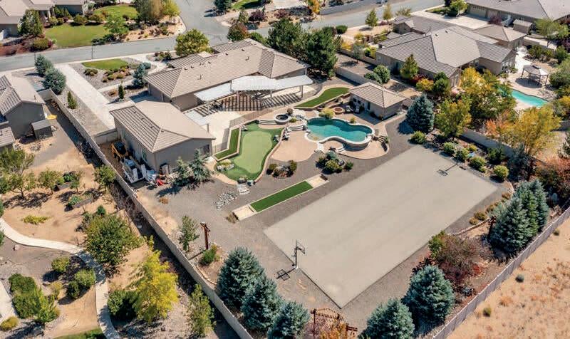 Welcome home to modern luxury, privacy and panoramic views. This custom crafted home fuses elegant country living with Tahoe rooted craftsmanship. Built upon the highest parcel in Pecetti Ranch Estates, views can be enjoyed from every vantage point. The home features 4 bedrooms, 5.5 baths, an office, a rec room and a bonus loft. The two story home is 5,640 sq.ft. on 2.03 acres backing up to an equestrian trail. There are two Primary Suites on the main floor; one on the South end with double-sided fireplace, mountain views and private patio; and one on the North end of the home with expansive city views, fireplace and wrap-around tile deck. The dramatic entry with views through the Great Room of Mt. Rose and surrounding mountains will truly be an inspiring way to welcome friends and family. Exquisite custom finishes abound! Some of which include a 150 foot long water feature, 2,200 sq.ft. of Wyoming stone veneer, 4 fireplaces with custom surrounds, bronze aluminum clad Weathershield windows with Fir wood interior, Oak engineered hardwood floors, solid core Knotty Alder interior doors and trim, cherry wood cabinetry, polished Granite and Quartz countertops, built-in BBQ with granite countertop and a separate hot tub patio with city views. The equestrian arena has just been completed which may also serve as a blank canvas for additional improvements (detached garage, shop, casita, tennis, pickleball, sport court or swimming pool)!