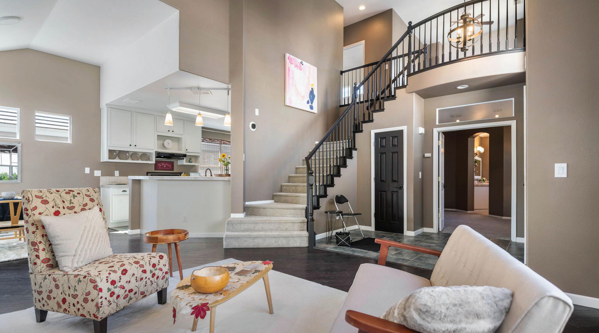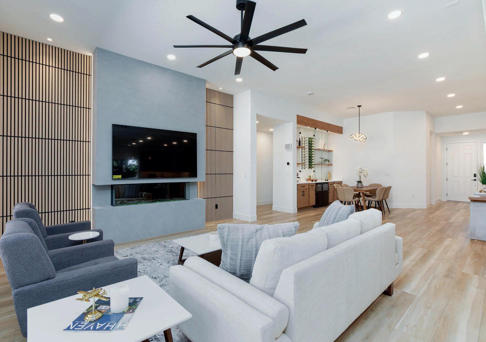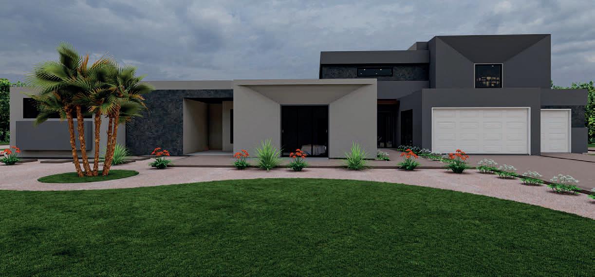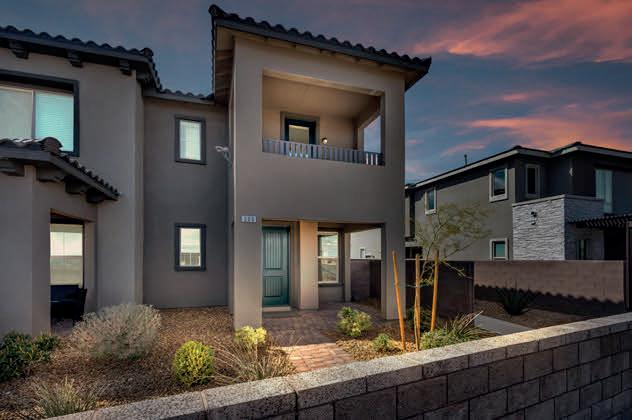 • Home 2: Designed to live like a single story, this spacious residence features the primary suite and two bedrooms on the main floor, plus a large loft, office/exercise room, and one additional bedroom upstairs. A 700 sq ft covered patio captures sweeping views of Downtown Las Vegas, the Strip, and nearby mountains. Estimated completion: February 2026.
