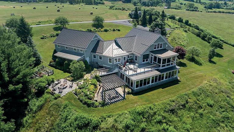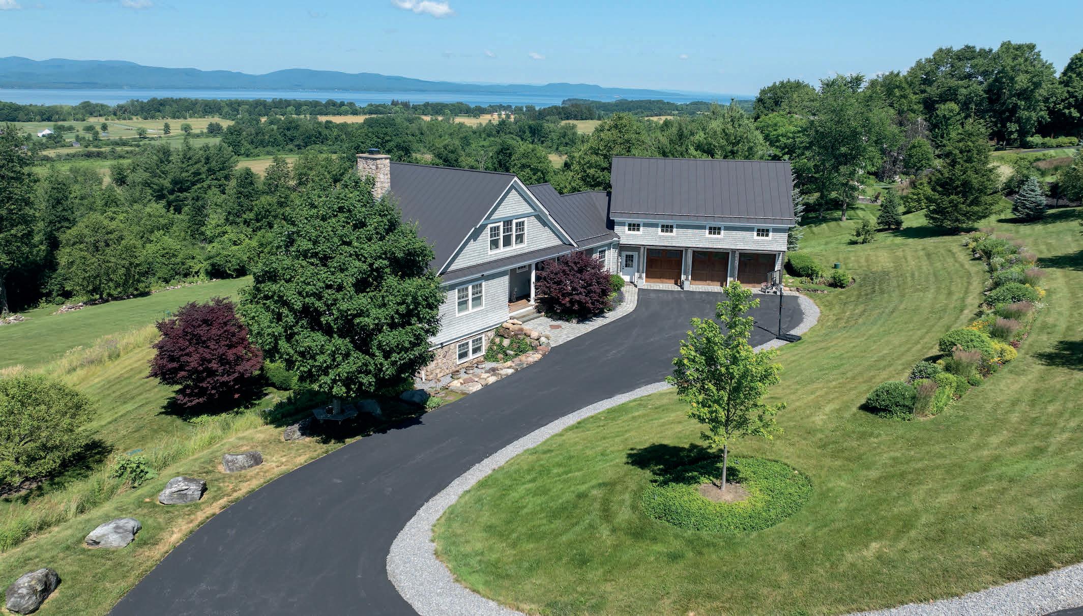 Perched gracefully on 11.79 acres, this thoughtfully designed Contemporary home in Charlotte offers breathtaking, unobstructed views of Lake Champlain and the Adirondack Mountains. Savor spectacular sunsets daily. From the moment you step inside, the open floor plan welcomes you with an airy sense of space and light, perfect for both relaxed living and elegant entertaining. At the heart of the home is an expansive gourmet kitchen, ideal for culinary creativity and lively gatherings. It flows seamlessly into a formal dining area and a dramatic two-story living room, where vaulted ceilings and large windows frame stunning natural views. The layout is both versatile and spacious, featuring two luxurious primary suites. One on the main level and another upstairs, providing options for multi-generational living or in-law accommodations. On the second floor, a bright and open landing creates a lovely flex space, while three additional bedrooms offer plenty of room for family and guests. The finished lower level expands your living space even further, with an executive office, playroom, and dedicated exercise room. An attached heated threecar garage as well as a detached heated and air-conditioned two-story barn are ideal for hobbies, storage, or creative projects. Outdoors, enjoy beautifully maintained gardens, a serene patio and pool area. A private retreat with postcard-worthy views. This is more than a home, it is a sanctuary and opportunity to live amidst VT’s finest splendor.
