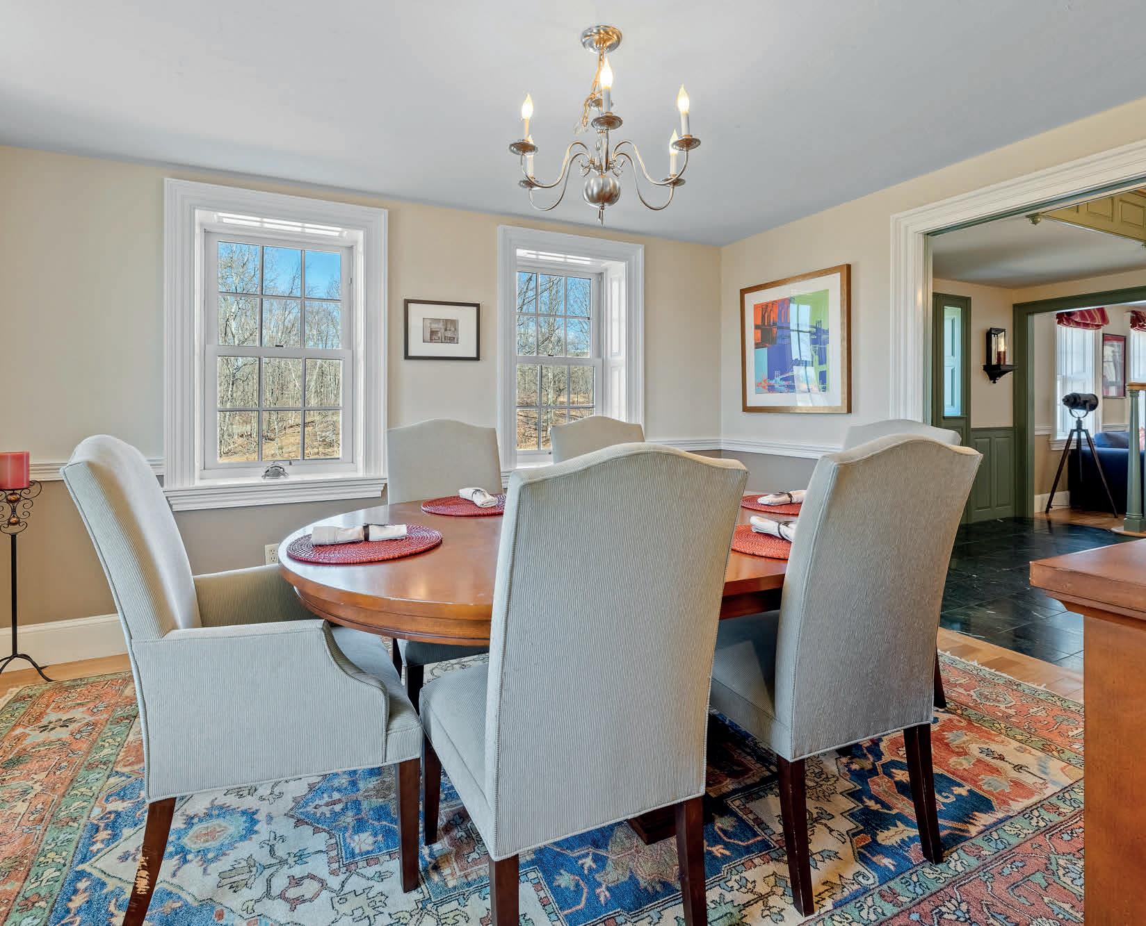 A timeless classic, reimagined for modern standards. Gracefully sited on 26+ serene acres, this 1825 brick Federal-style residence is a study in enduring beauty and thoughtful renewal. With its inviting façade, refined proportions, and period detailing, the home stands as a testament to early American architecture—now artfully updated for 21st-century living. In 2023, the property underwent a comprehensive renovation, seamlessly blending historic integrity with modern comfort. At the heart of the home, a refined kitchen anchors daily life with an AGA stove, custom millwork, and top-tier appliances. Four gracious en suite bedrooms with marble and porcelain tile, a private sauna, and new windows throughout enhance the living experience with understated luxury. The result is a home of rare character—timeless, classical, and quietly grand— surrounded by open land, mature trees, and the quiet rhythm of the countryside.