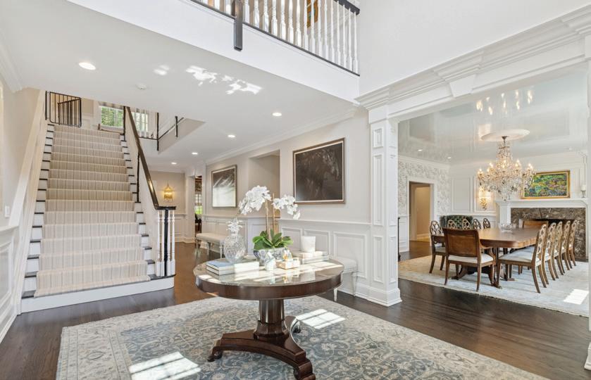 You enter this spectacular 9,000+ sqft home through the impressive foyer with 25’ ceiling, you see the tremendous detailing room to room from the moldings, millwork, beams, paneling and the hardwood floors that grace the home, adding unparalleled elegance to every room.