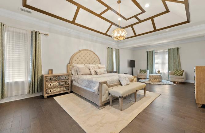 decadent Italian columns, gorgeous millwork, dentil molding inlay within the crown molding, tray ceiling with trim, chair rail with designer paint, bump out with 4 large windows! The cozy sitting room makes the perfect library or den, with fireplace and wall-towall carpeting. The first-floor office/study with built-ins can be used as a 6th bedroom. The extravagant primary suite boasts 2 massive walk-in closets, sitting room, plush carpeting, window seats with extra storage, a wall of windows overlooking the gardens, a powder room, and opulent full bathroom with water closet, Jacuzzi tub with sleek black tile surround, dual sinks, striking columns, and floorto-ceiling tiled shower. The left wing of this grand estate has three bedrooms ( one is part of in-law suite) with huge walk-in closets, 2.5 bathrooms, full laundry room, several storage closets, and separate entrances from the back, side, and garage for your convenience. The massive basement has a bedroom with egress windows, gym with commercial grade water fountain, second office, a full bathroom, and additional nearly 6000 sq feet just waiting to be finished ! Don’t miss out on your dream home!