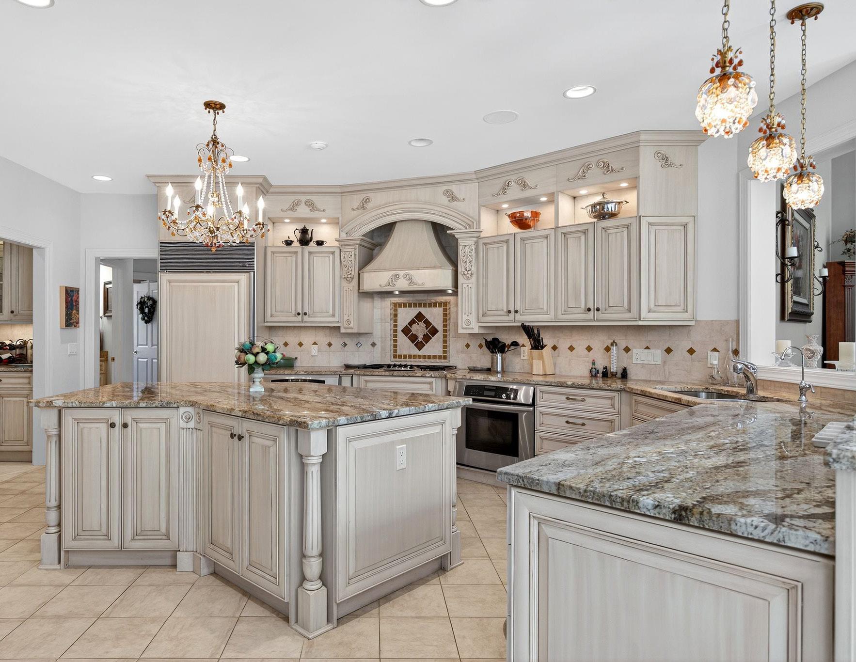 Sophistication and elegance abound in this former Home-A-Rama Best of Show award winner that has been updated in just the right ways while leaving the original charm and appeal that made the home a showstopper. The home’s original Italianate features remain while it sports modern flooring on the first- and second-floor living areas as well as fresh, neutral paint throughout. Sonos smart technology has enhanced the house that was already designed for entertaining by adding a customizable sound system throughout including to the bar, billiards area, home theater and exercise room in the basement. And if you don’t need an exercise room, the sellers added closet space to this room making it a bonus bedroom as well. Automatic Hunter Douglas blinds adorn each window on the first floor and can be controlled by an app or directly by the push of a button on each blind. Nest thermostats add to the ease of the home’s use. And if you like to cook, this gourmet kitchen will not disappoint. The 48” Wolf Range with griddle insert and companion oven and additional Wolf built in oven and warming drawer are top of the line, and the dishwasher and refrigerator are disguised to blend with the custom cabinetry. Granite countertops and a travertine backsplash add to the high-end finishes found in this beautiful space which is open to the hearth room that is flooded with natural light and overlooks the fountain behind the home. A covered patio with remote-controlled screens and heating lamps are off the hearth room’s breakfast room, and both also have a spectacular view of the pond and fountain behind the home. The soaring, two-story great room has a box beam ceiling and floor-to-ceiling windows that flood the space with natural light. The first-floor primary bedroom is right next to a home office complete with a wall of built ins just right for working from home. The primary bath competes with any high-end hotel. This home has too many features to name and must be seen in person!