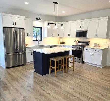 4 BD | 2.5 BA | $459,000. This beautifully updated 4 bedroom, 2 1/2 bath residence offers stunning lake views, with direct lake access, and all the modern amenities you’ve been looking for. The home features a spacious primary en-suite for your private retreat, plus 3 additional bedrooms and a second full bath to accommodate family or guests. The updated furnace and air conditioning ensure year round comfort, and the home is truly movein ready complete with new kitchen appliance package. Additional updates include new windows, patio door, and flooring. The full finished basement provides exceptional versatility, including bonus space for a home office, gym, or additional guest space. Start your mornings with coffee by the water, take your kayak out from the dock, and unwind with gorgeous sunset views. Don’t miss this rare opportunity for lake living in a fully updated home!