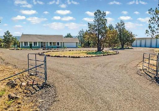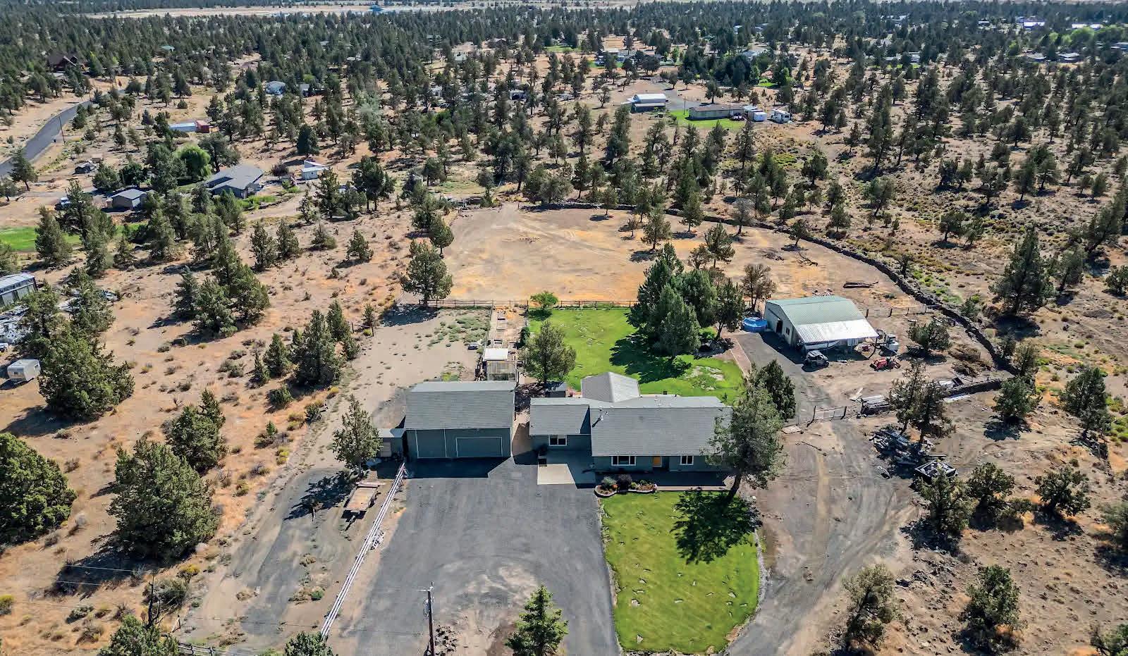 Stunning Grandview Estate in Powell Butte, Nestled on 9.67 Acres with Breathtaking Mountain Views. Meander through the Custom Gated Driveway to the Sprawling Single Level Mountain Modern Home with Contemporary Style and Picturesque Windows. Spacious Great Room with 16ft ceilings, Custom Iron Wood Burning Fireplace, Amazing Slider to the Covered Back Patio with Custom Fire Pit and the Sparkling Water Feature, Privacy and Views. Kitchen boasts large Quartz/Stone Island with Underlighting, Jen Air Appliances, Butler Pantry with Floating Shelves. Luxury Primary Suite features Stone Wall with lighting, Private Covered Patio with Hot tub, Elegant Primary Bath with Porcelain Heated Floors and Shower, Custom WalkIn Closet. Bonus Room with Wet Bar, along with Two Guest Suites. Attached Three Car garage with Safe Room, Detached RV Garage with potential for an ADU - 732 SF Flex space with bathroom and laundry. Come Tour this Home Today!