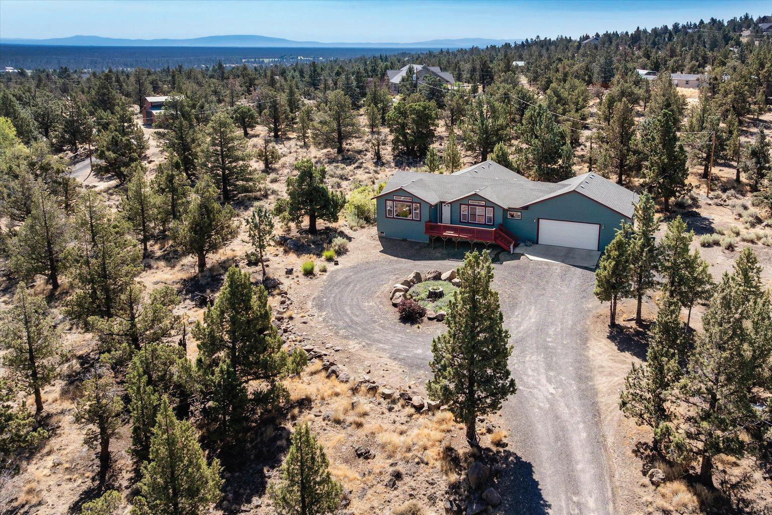 AMAZING LOCATION -Between Bend & Redmond! Check with County re: ADU/STR use. Custom-built retreat in the coveted Whispering Pines Estates, where privacy, comfort & natural beauty converge. Nestled on nearly 5 acres of tree lined serenity, this stunning home captures jaw-dropping views of Mt. Jefferson, Black Butte, & Smith Rock, making every day feel like a postcard. Designed w/ relaxation & connection to the outdoors in mind, the home features 3 spacious bedrooms, lrg laundry room, & open layout centered around the great room & primary suite- both perfectly positioned to soak in mountain vistas. The heart of the home is an open concept kitchen feat. warm hickory cabinets, large bar-style island, & generous counter space- ideal for casual breakfasts, entertaining guests, or gathering w/ family. Enjoy the magic of Central OR sunsets from your front deck, where every evening paints the sky in breathtaking color. Oversized, 826 sqft attached garage plus ample parking for RV & toy