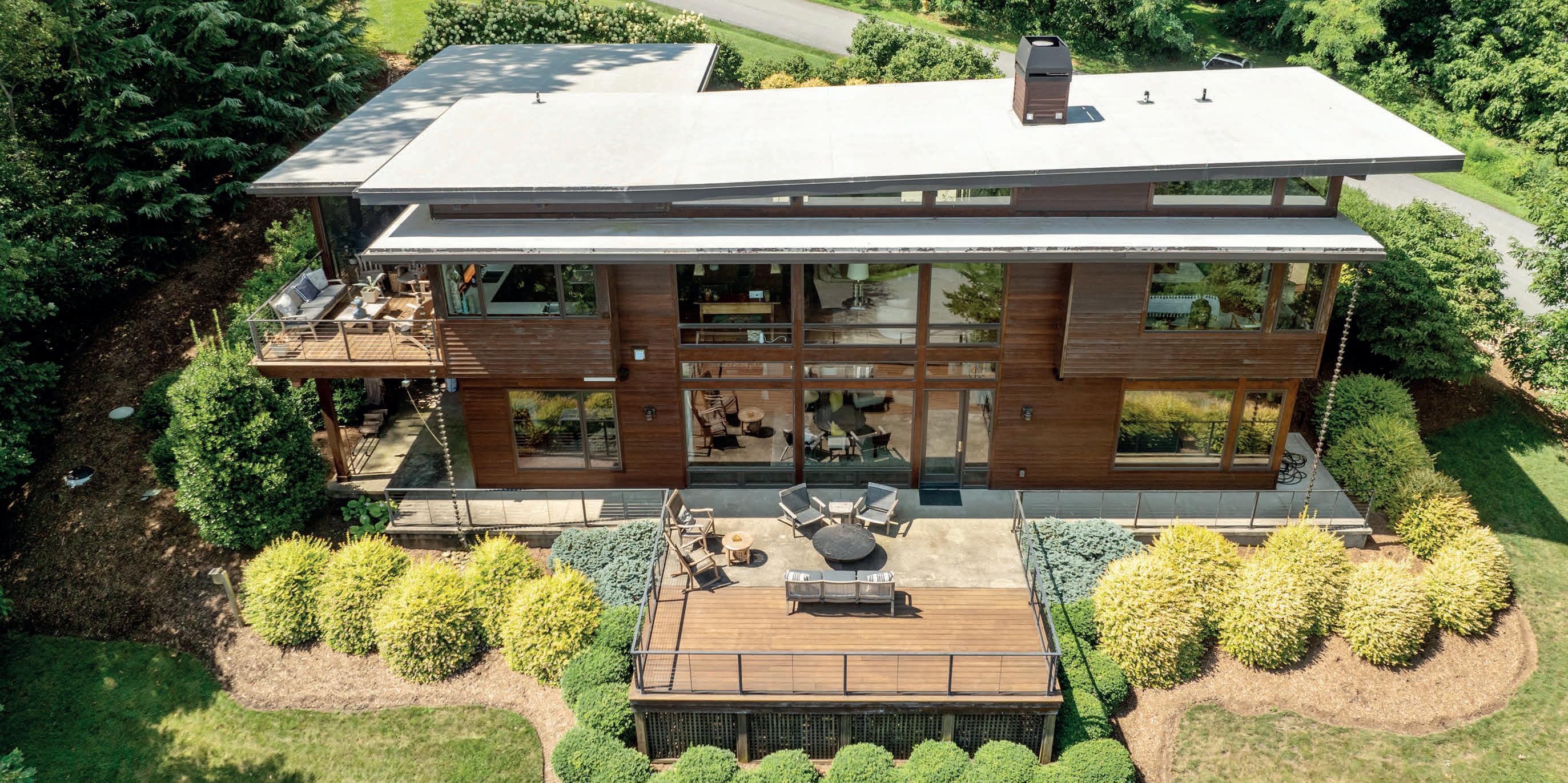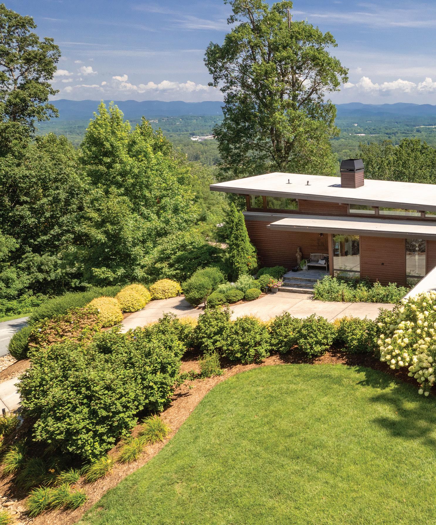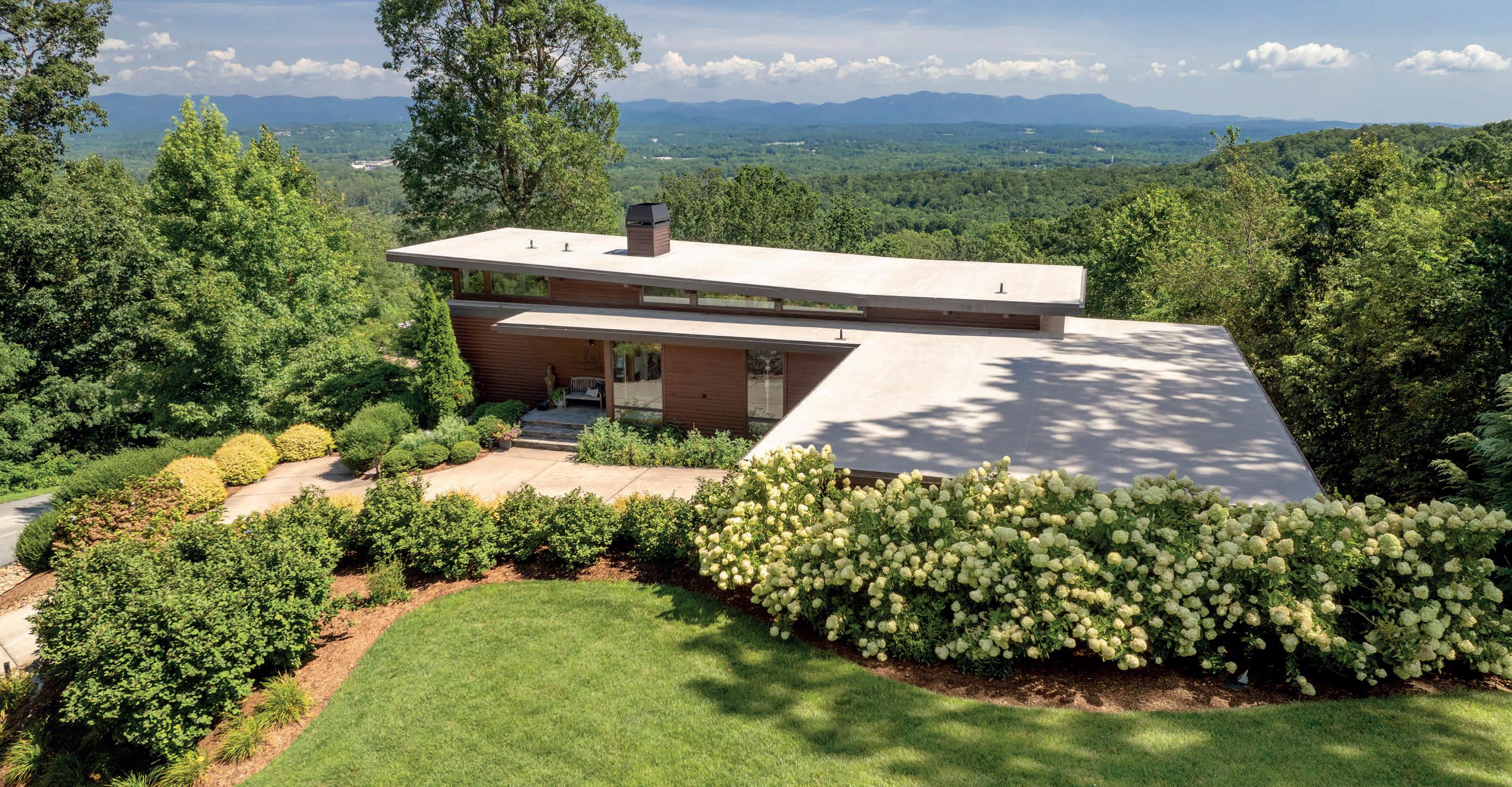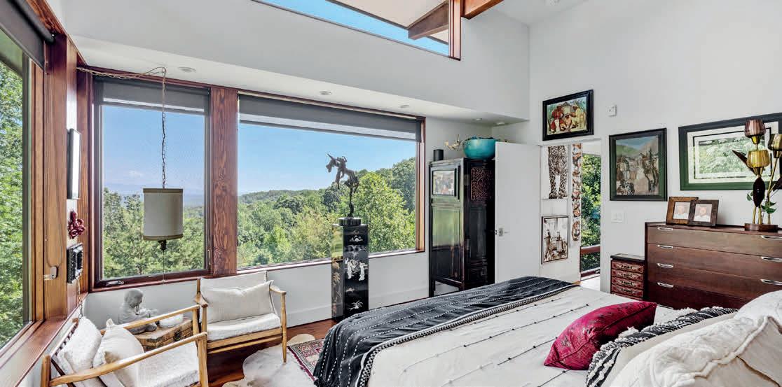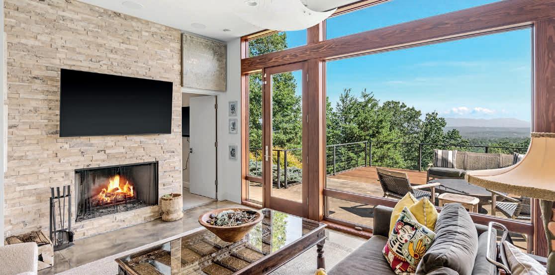 Experience contemporary mountain living at 6 Windfaire Pass, a stunning modern retreat perched within the gated Ridges at Paris Mountain—just 15 minutes from downtown Greenville. Designed by an acclaimed Boston architectural firm and built by award-winning Dillard-Jones, this 2014 custom home blends mid-century modern influences with breathtaking Blue Ridge views. The home’s striking butterfly-style roof and clear cedar exterior reflect its natural surroundings, while expansive windows bring the outdoors in, capturing panoramic mountain vistas from nearly every room. Inside, the open-concept main level features a dramatic great room with wood-beamed ceilings, a chef’s kitchen outfitted with Viking and Jenn Air appliances, and a serene owner’s suite with spa-like bath. Warm touches include 100-year-old reclaimed heart pine floors and a white oak accent wall, milled from a tree on-site. The lower level offers two additional en-suite bedrooms, a sauna, and walk-out access to a large deck—all with 10-foot ceilings and sweeping views. Passive solar elements and polished concrete floors provide sustainable comfort year-round. Enjoy quiet privacy, natural beauty, and close access to Paris Mountain State Park, the Swamp Rabbit Trail, Travelers Rest, and Furman University.