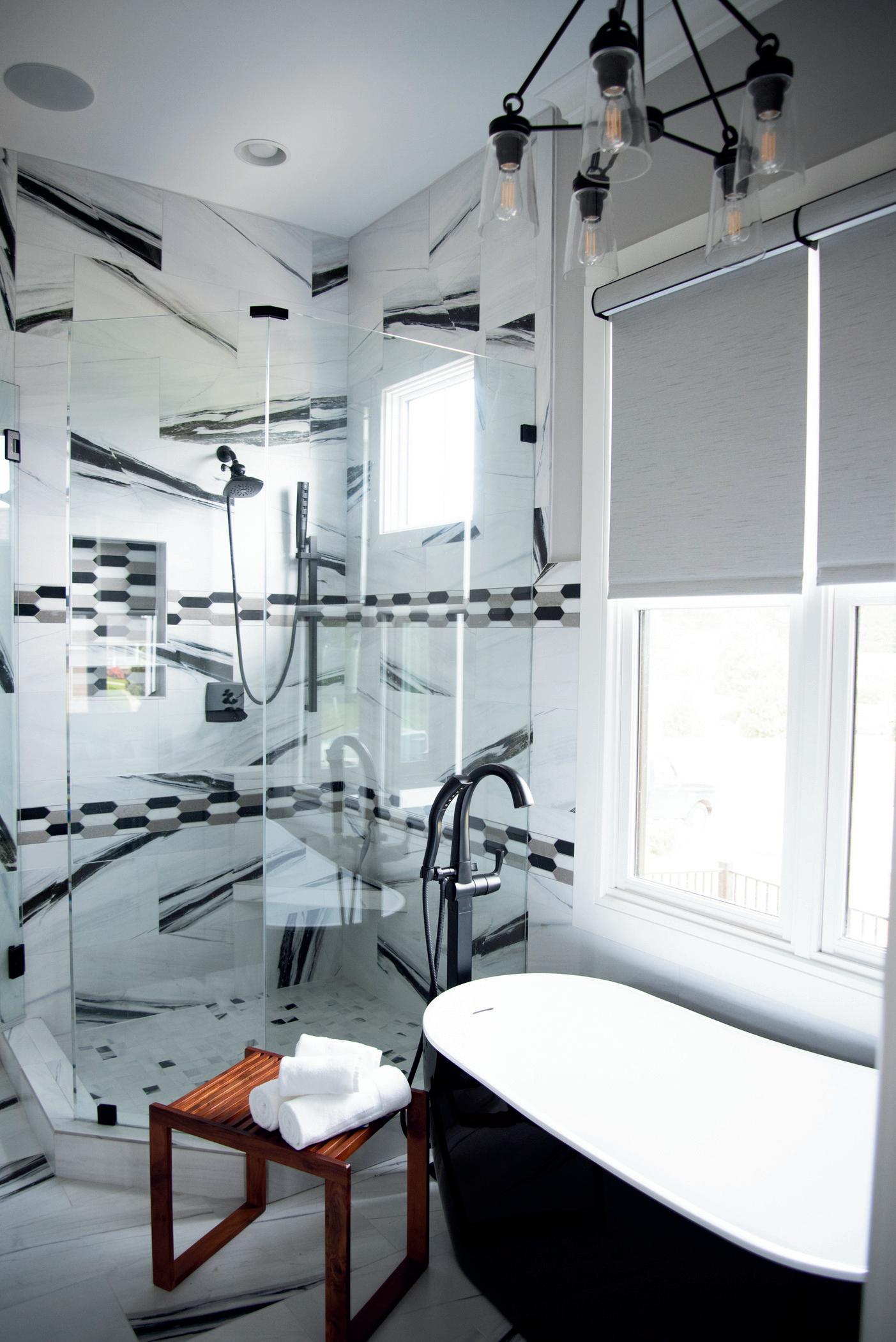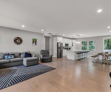The primary suite feels spa-inspired with a custom layout, sleek tilework, and lighting that creates a calming retreat. Throughout, refinished hardwood floors and a striking staircase set the tone, while new HVAC, lighting, doors, and closets add peace of mind.