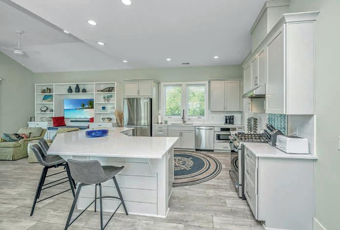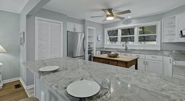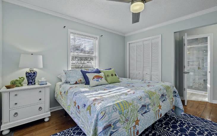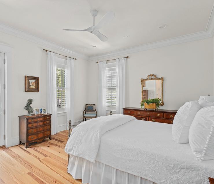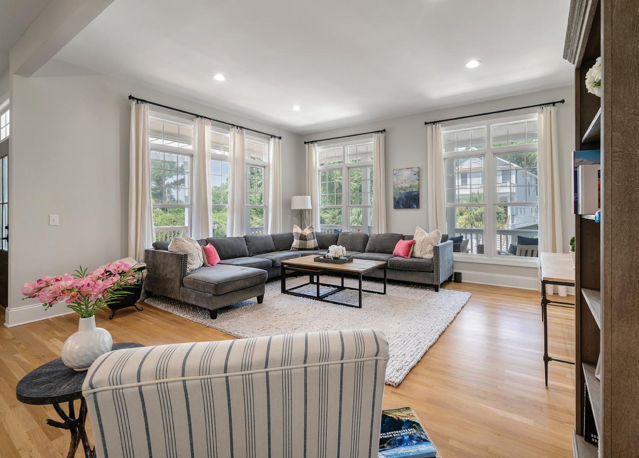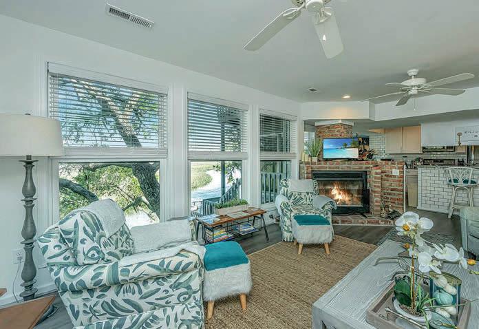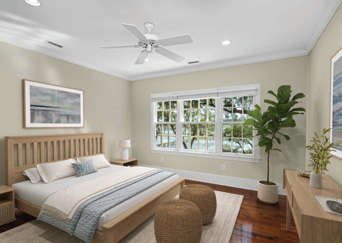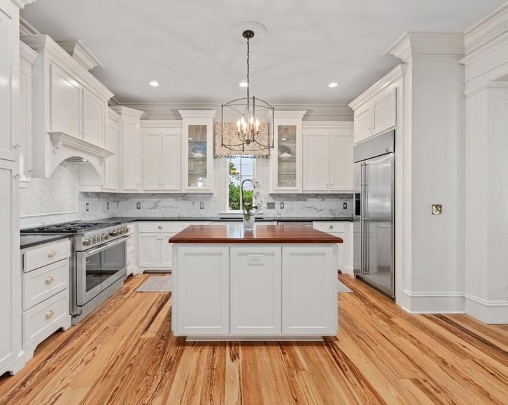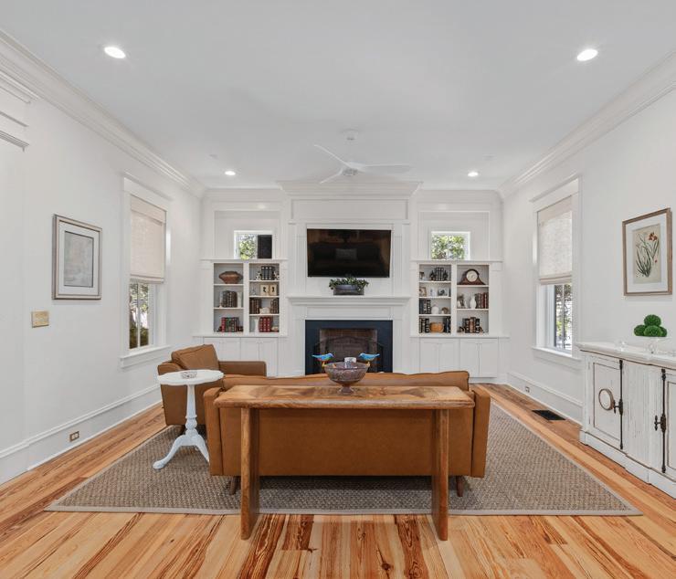 This elevated, four-bedroom, three-bath home blends relaxed charm with modern sophistication. The kitchen was fully reimagined with custom cabinetry, quartzite counters, a Viking gas range, Sub-Zero fridge, and two-drawer dishwasher—equally ready for quick weeknight meals or a festive Lowcountry boil.