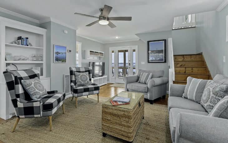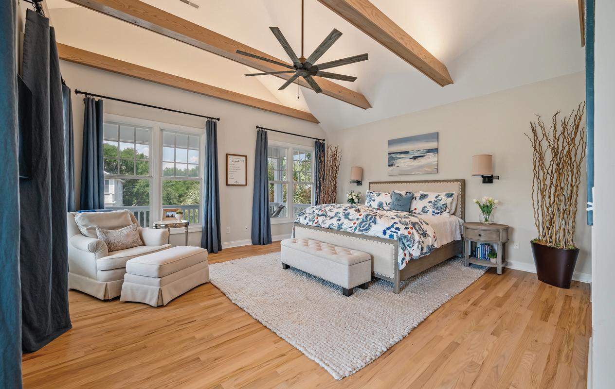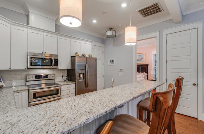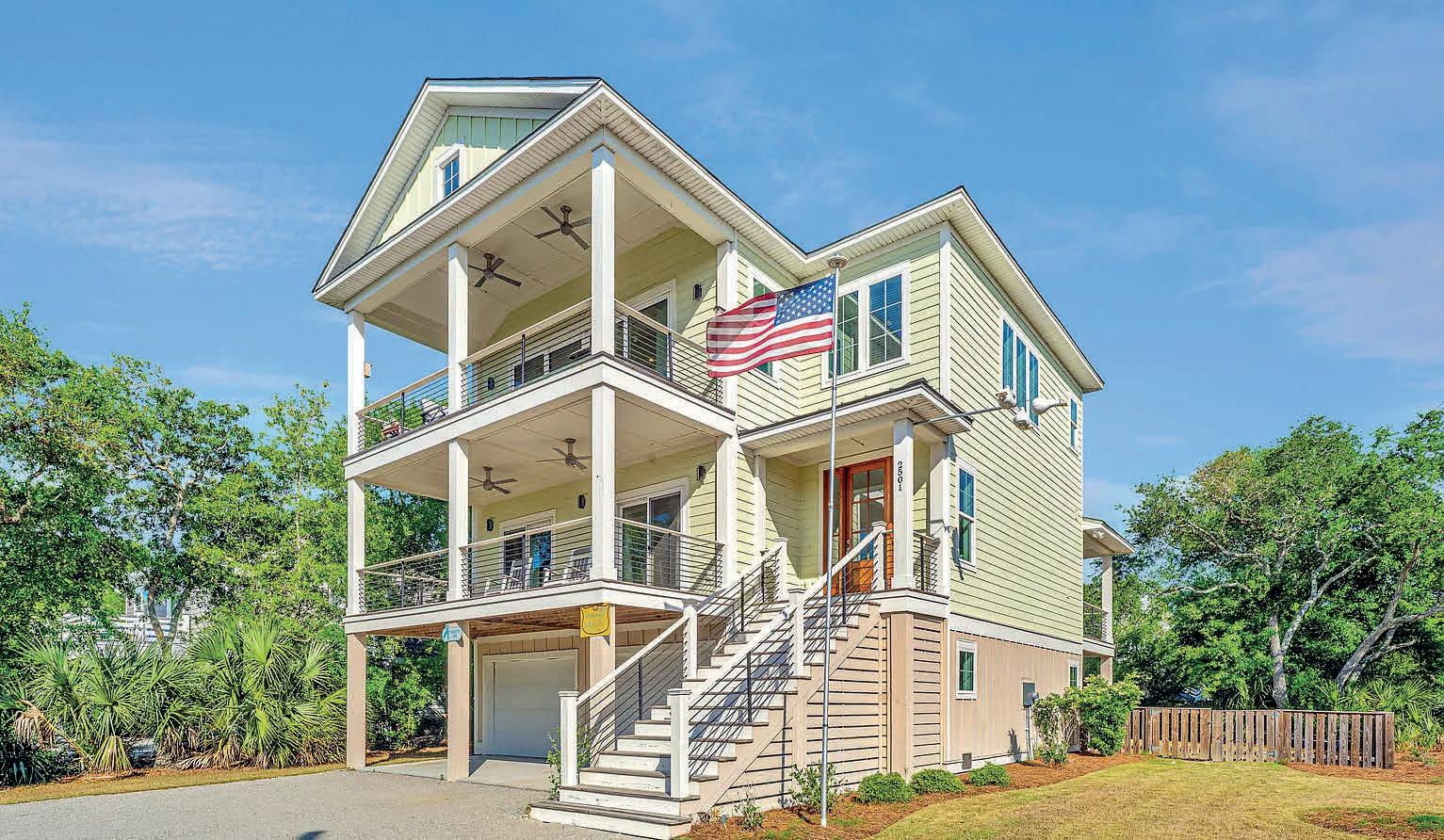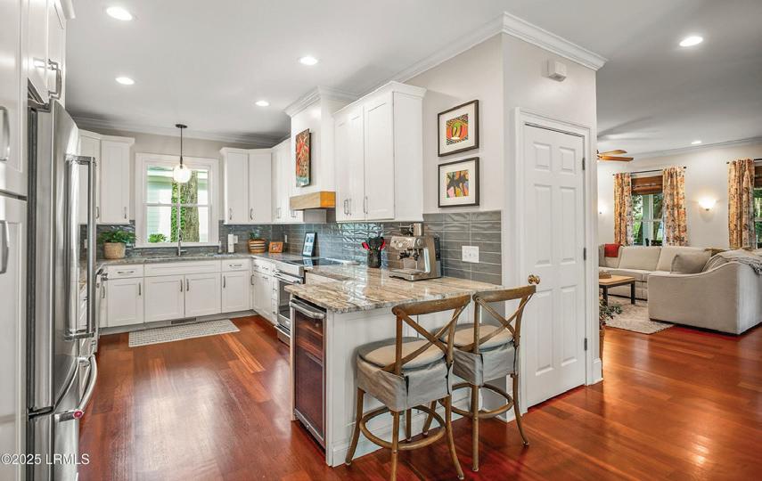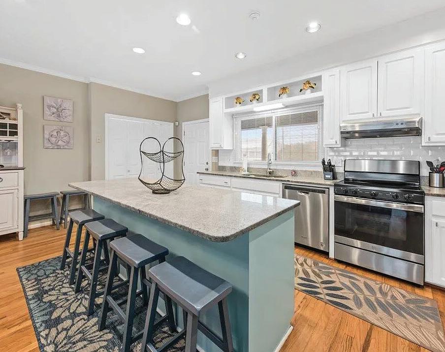 This elevated, four-bedroom, three-bath home blends relaxed charm with modern sophistication. The kitchen was fully reimagined with custom cabinetry, quartzite counters, a Viking gas range, Sub-Zero fridge, and two-drawer dishwasher—equally ready for quick weeknight meals or a festive Lowcountry boil.