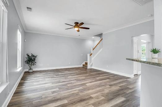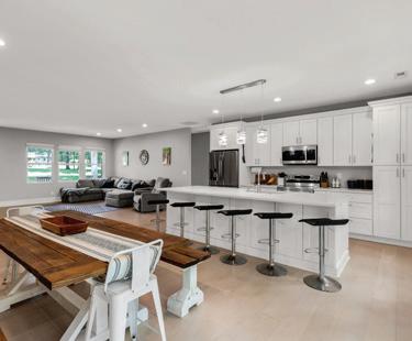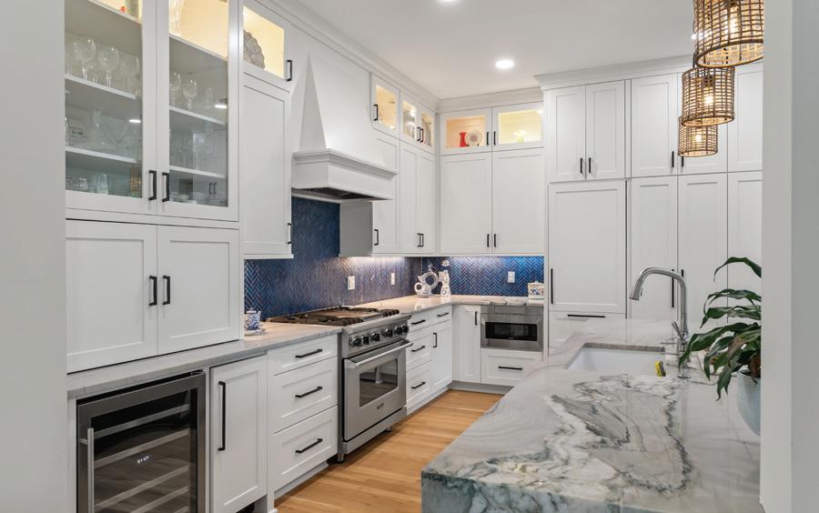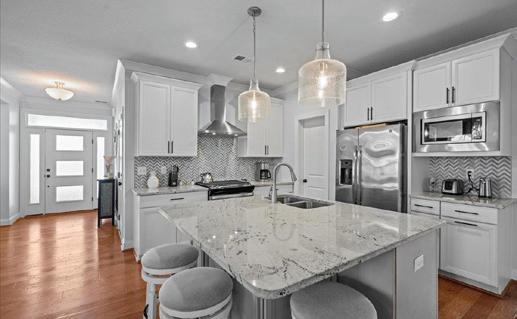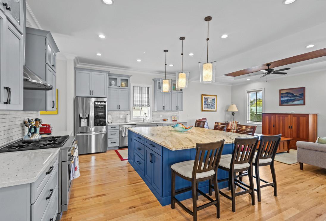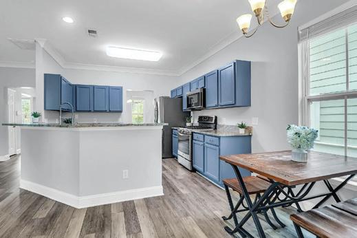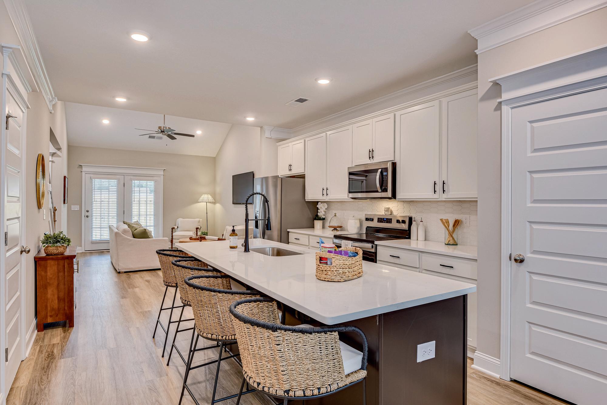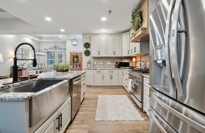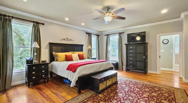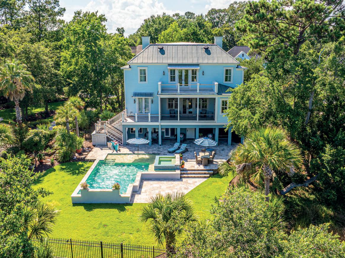 This elevated, four-bedroom, three-bath home blends relaxed charm with modern sophistication. The kitchen was fully reimagined with custom cabinetry, quartzite counters, a Viking gas range, Sub-Zero fridge, and two-drawer dishwasher—equally ready for quick weeknight meals or a festive Lowcountry boil.