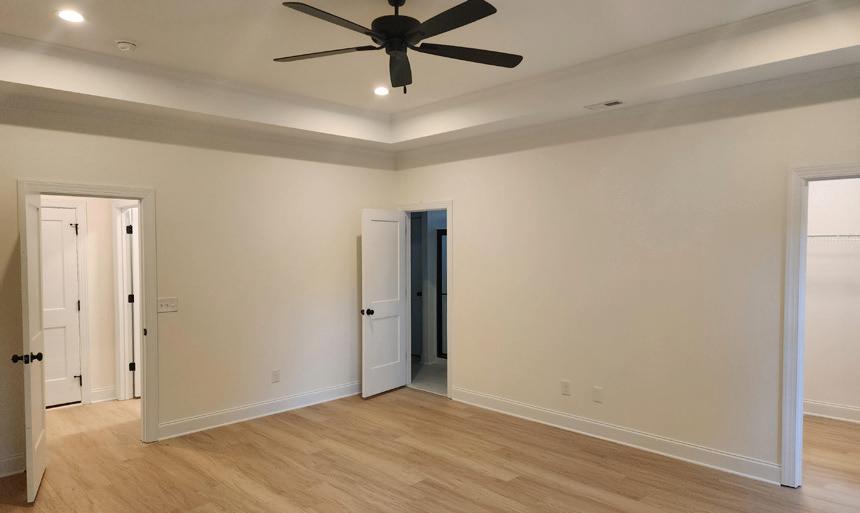 The third level features the owner’s retreat. Accessible by elevator, the primary suite offers sweeping views, a spa-inspired bath with a soaking tub and separate shower, double vanities, and an expansive walk-in closet. Another bedroom with full bathroom and bonus spaces round out the top floor.