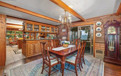 The garage offers space for 6 cars, storage, a workshop, RV outlet, and EV charger wiring. Outside, enjoy a private saltwater pool, summer kitchen with Blaze grill and Green Egg, multiple decks, and direct beach access.