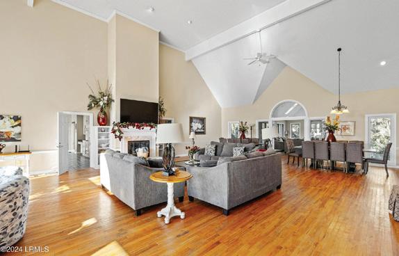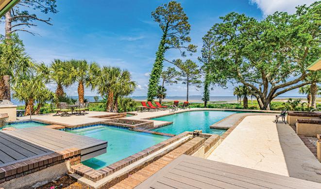 Live the Lowcountry lifestyle in this custom waterfront home with jaw-dropping views, a resortstyle saltwater pool & spa, and your own private dock with boat lift and floater. Designed for both elegance and everyday comfort, this 5-bedroom home features a stunning open layout,gourmet kitchen with Jenn-Air appliances, spacious primary suite with water views, and multiple guest suites. Enjoy indoor-outdoor living with a screened porch, sun deck, and expansive patio perfect for entertaining. The ground level offers a full suite, workshop, and 3-car garage. Palm trees, gas lanterns, and custom wrought iron details complete the picture. This is your chance to own a private Lowcountry oasis—perfect for boating, swimming, relaxing, and making unforgettable memories.