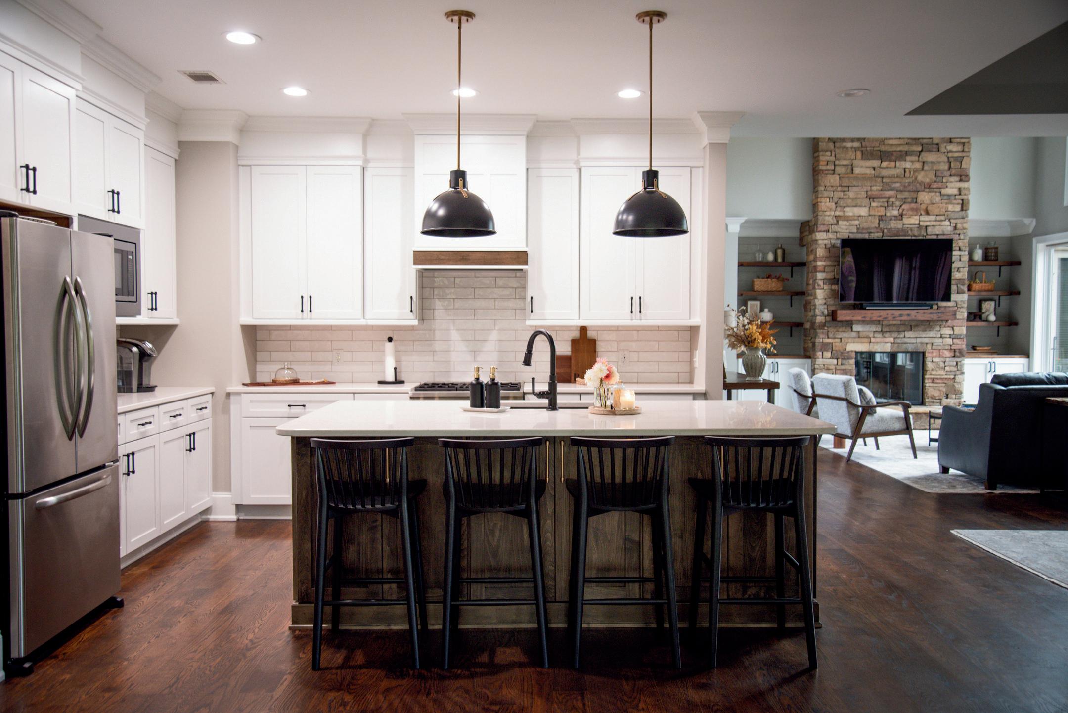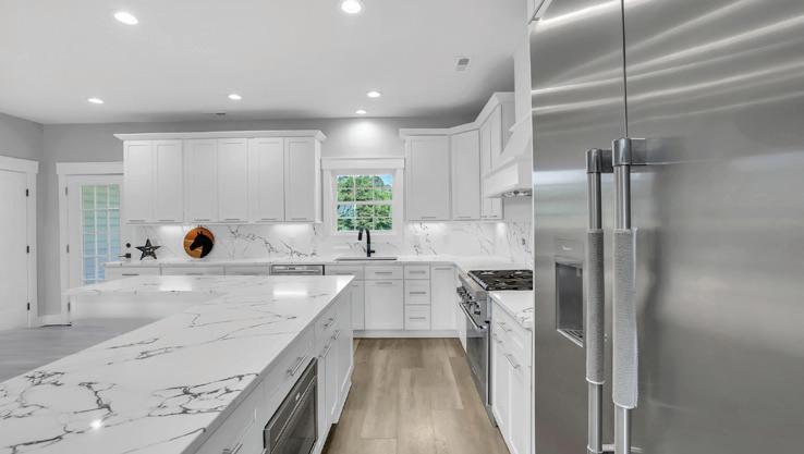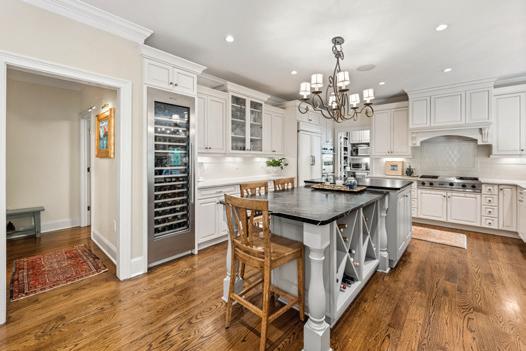 Inside, craftsmanship and comfort meet in every space. Hardwood floors, crown molding, and designer finishes set the tone. The second floor serves as the home’s hub, featuring a chef’s kitchen with granite countertops, a dual-fuel range, built-in wine chiller, and a large scullery. The open living and dining areas connect seamlessly, with a private office and laundry room adding everyday functionality.