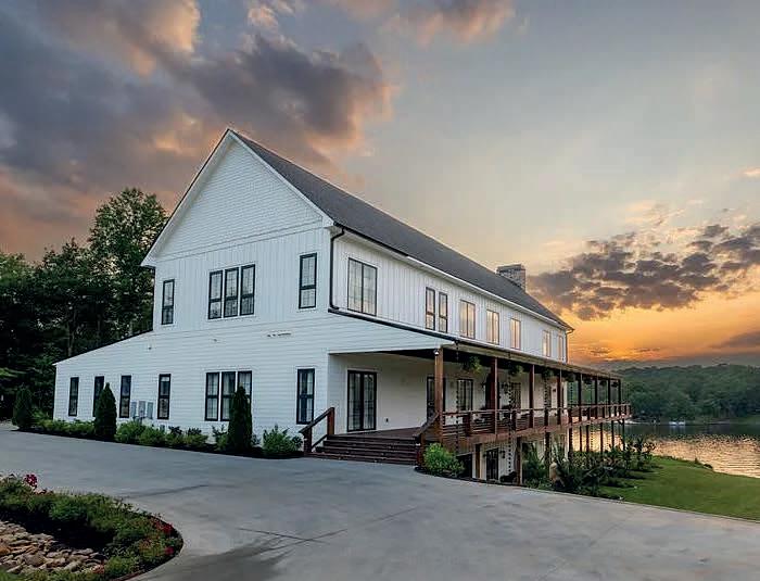Experience the pinnacle of lakeside luxury at 126 Clearview Drive, the crown jewel of Lake Secession. Spanning 12,000 square feet and situated on 8 pristine acres, this one of a kind estate seamlessly blends contemporary farmhouse elegance, traditional charm, and barndominium flair into a masterpiece of design and comfort. From the moment you pass the storybook white barn and fenced garden, anticipation builds as the grandeur of the home comes into view - so impressive you might miss the lake itself at first glance. Greeted by expansive wraparound porches and a 10-foot arched steel door, the entrance sets the tone for a truly unforgettable interior. Inside, you’re welcomed by 48foot vaulted ceilings, rich global influences, and artistically curated colors that evoke emotion in every corner. The open-concept living and dining areas are framed by 5-foot-wide catwalks that overlook the main space and provide unmatched sunset views over the 6.5-mile lake. The custom-designed kitchen features high-end, beautifully colored appliances and a 22-foot island that mirrors the handcrafted dining table below unforgettable statement lighting. A full-service coffee bar in the primary suite adds luxury to your morning routine, while a private deck invites serene sunrises and afternoon sunbathing. The primary bath is a work of art, boasting dual water closets (yes, a urinal included!) and a Europeaninspired bathing room with a stunning blue soaking tub. A massive walk-in closet with a private washer and dryer completes the