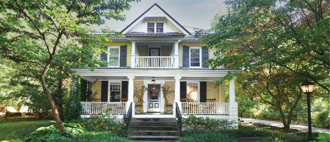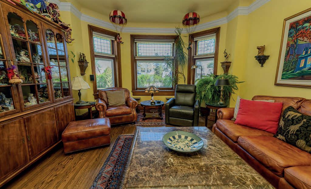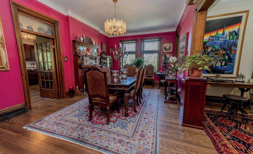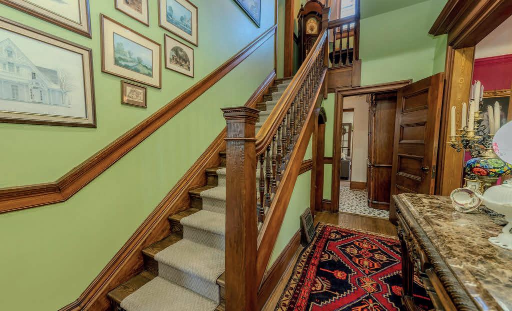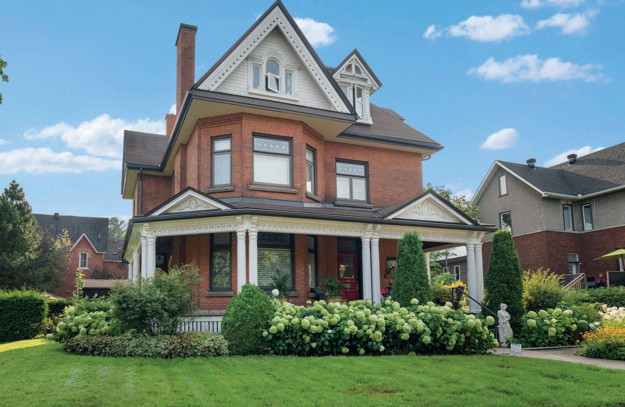 A rare offering of historic grandeur and refined comfort, this stately 5-bedroom, 4-bathroom estate sits gracefully on an expansive, meticulously landscaped lot. Masterfully preserved and thoughtfully updated, the home showcases exquisite original millwork, soaring ceilings, and expansive living spaces across three finished floors and a full basement. Arrive via a tree-lined approach to be greeted by lush gardens and an elegant wrap-around porch perfect for quiet morning coffee or evening gatherings. Inside, a grand foyer opens to generously scaled principal rooms, including a formal dining room, timeless library, and an inviting living room with a wood-burning fireplace. The spacious kitchen blends heritage character with everyday functionality, ideal for both family living and elegant entertaining. Upstairs, five well-appointed bedrooms and three full baths offer both privacy and flexibility, while the third-floor family room provides a tranquil retreat with elevated views. Every space has been curated for comfort, sophistication, and ease of living. Two furnaces (basement and upper floor) and air conditioning are 4 years old, kitchen backsplash and quartz countertop, high end stainless steel appliances, hot tub and fencing on west side of property 3 years, outdoor patio 1 year old. The home has been completely repainted (inside and out) over the past four years. Set in a private, prestigious enclave just minutes from city amenities, this exceptional residence offers the rare blend of historic charm and modern luxury. A truly distinguished property for the discerning buyer.