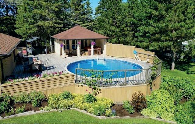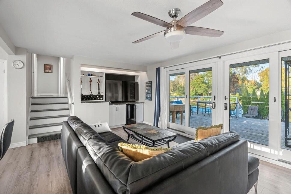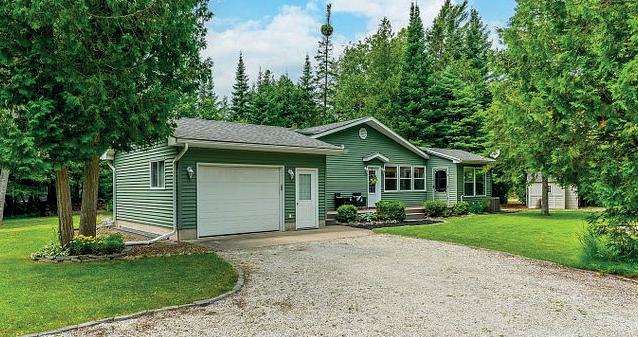 This updated 4-bed, 4-bath Stayner home sits on a private 93’ x 158’ treed lot. Backyard features an above-ground pool, composite deck, outdoor kitchen, dining/lounge areas, cedar sauna, and a cozy she shed. Oversized detached garage/shop offers soaring ceilings, hydro, and separate driveway—ideal for a workshop, business, or storage. Stylish interiors include a quartz kitchen, vaulted family room with gas fireplace, and primary suite with Juliet balcony and custom closet. Lower level boasts rec room, wet bar, gym, and sauna access. Ample parking for boats/trailers. Renovated 2002 with modern updates. Offered at: $1,049,999