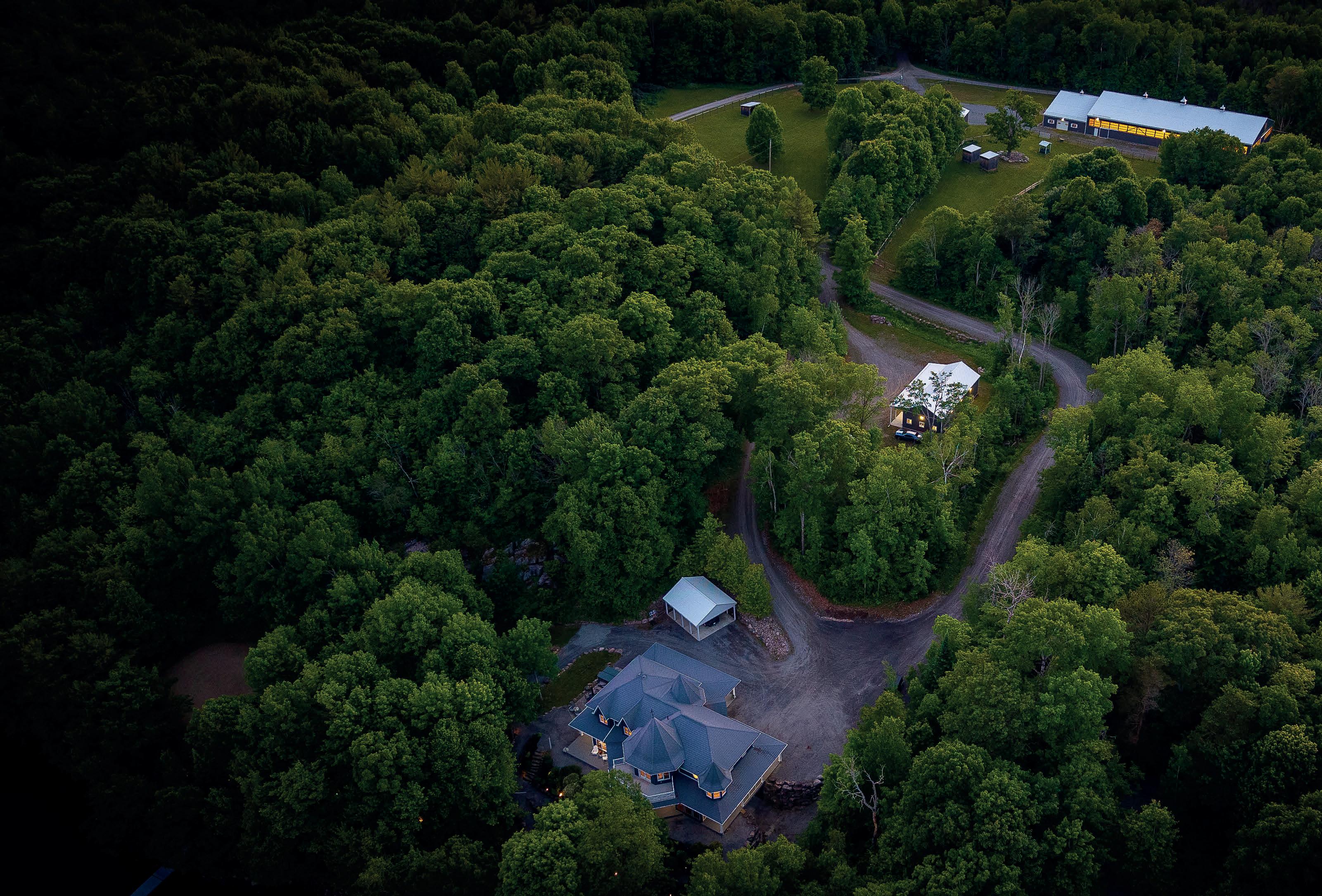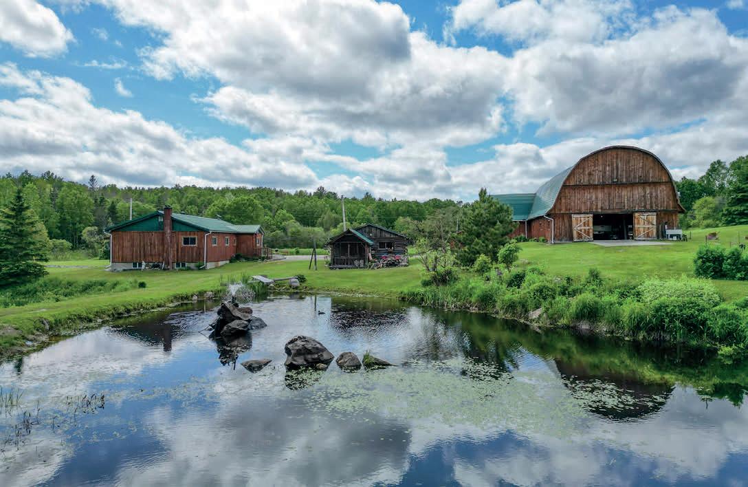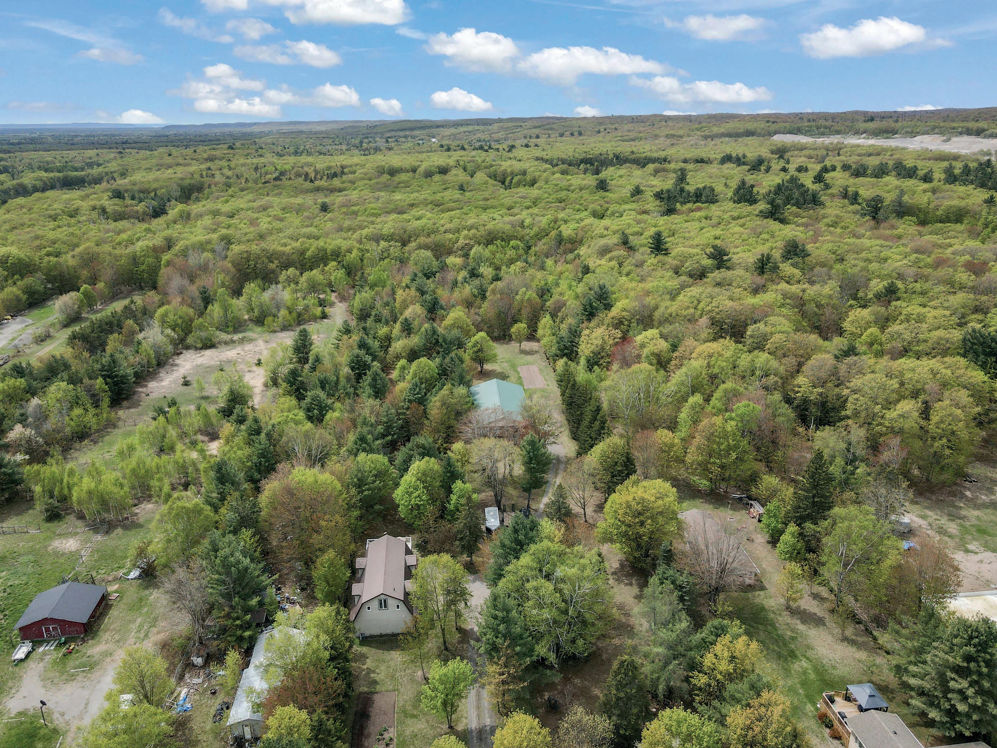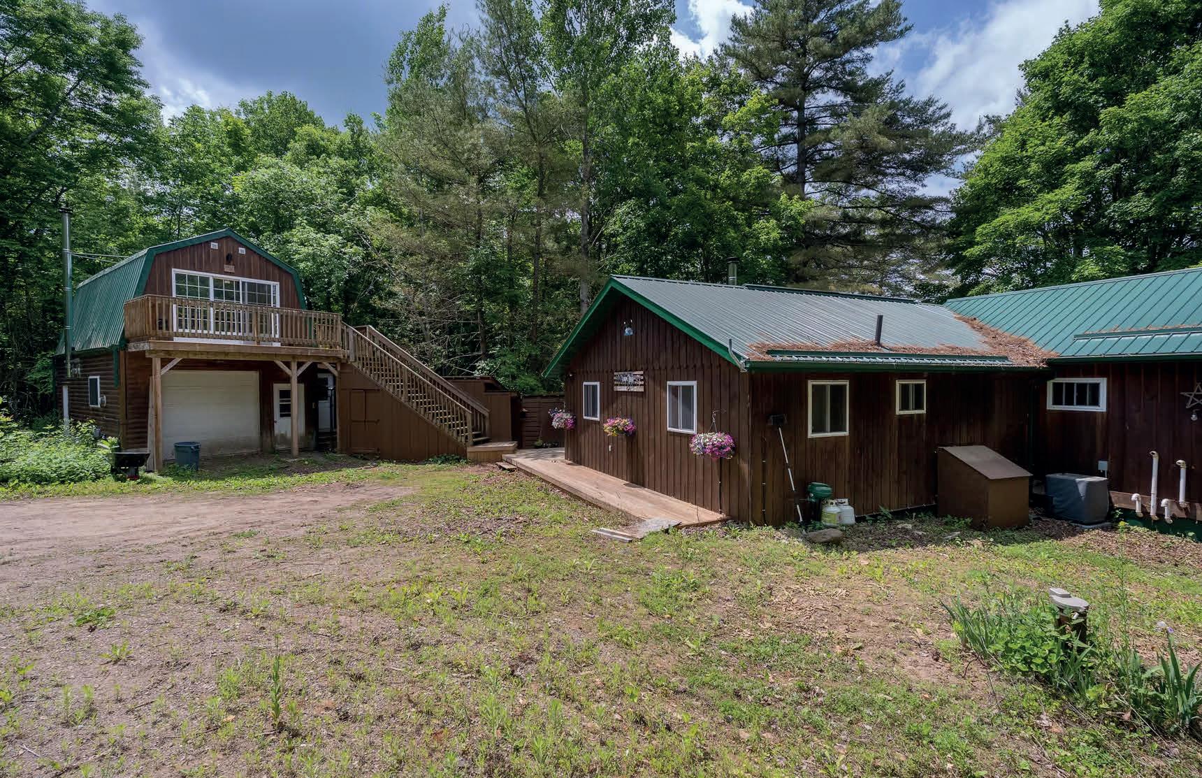 100 acres of private paradise within 15 minutes of Huntsville or Bracebridge. Charming newer, winterized log cabin/ home in your own forested haven Off grid, but well outfitted with solar and generator for seamless operation. Three guest cabins that can provide great income if rented. Several more outbuildings including livestock buildings, garage, gazebo, sauna. Large pond on property with ever-flowing creek. This is a one of a kind nature lovers paradise. Come take a look.