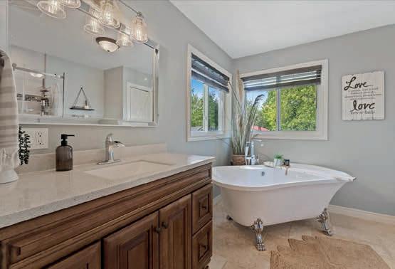 Discover a truly exceptional residence where nature and artistry blend seamlessly to create a oneof-a-kind, four-bedroom home unlike any other. Thoughtfully upgraded and lovingly maintained over the years, this property welcomes you with expansive windows that flood the space with natural light. A central floating staircase stands as a sculptural centerpiece, while the openconcept main floor offers versatile living and family rooms that adapt to your lifestyle. Step from the kitchen onto an elevated deck, descend to the garden below, and find yourself immersed in lush vegetation, with a private path leading to picturesque Collins Creek. Upstairs, a hidden nook awaits—perfect for a play area or home office—while a spacious bonus room under the garage offers endless possibilities for a workshop or personal gym. The lowest level features a full-height storage area or cold cellar and a dedicated utility room. This home defies convention, inviting you to imagine and create spaces that suit your vision, rather than asking you to fit into a mold. Take a walk through and let inspiration guide you—opportunities like this are rare, and this remarkable home is ready to become your personal piece of nature in the city. Contact Paulanne for more information and a list of home improvements.