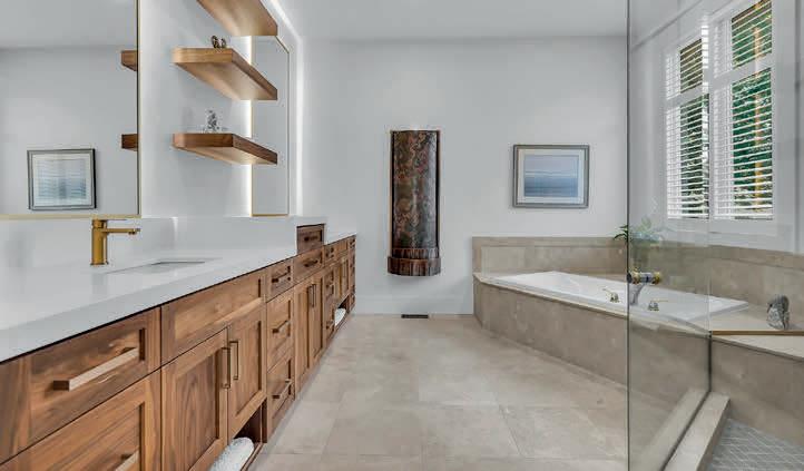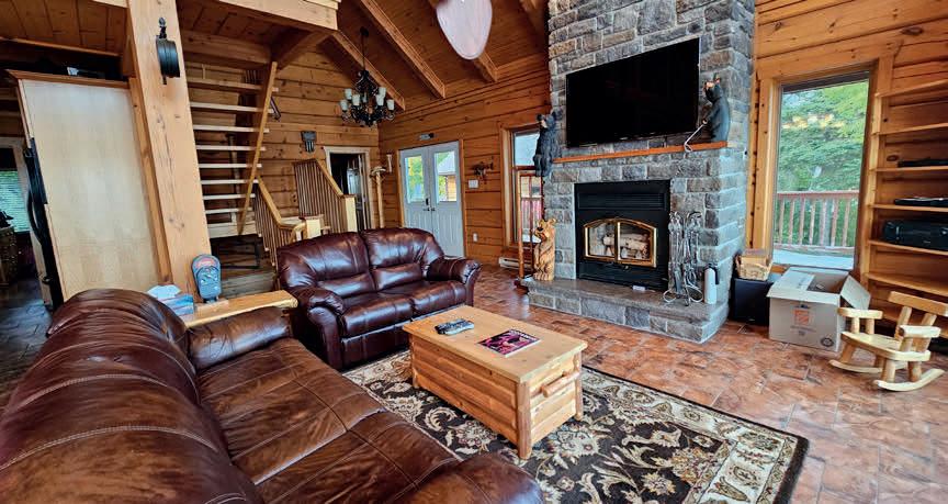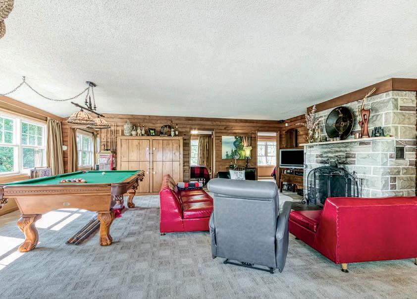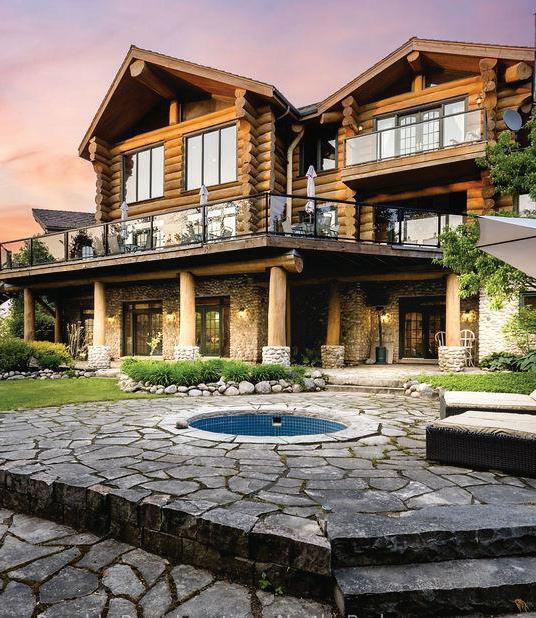 in-ground hot tub. A true legacy property, offering a level of privacy, scale + beauty that simply can’t be replicated. Massive log doors feature hand-carved artwork & open to 20-ft high grand foyer a Shooting-theRapids carving. Main floor-dining room, living room with wet bar, sitting room with beautiful lake views+office. Custom Kitchen offers a Dacor + Thermador stoves, oven, Sub-Zero fridge/wine cooler, butlers pantry, 2 dishwashers+fireplace. The spectacular main floor primary suite has vaulted ceilings, stone f/p +spa-like ensuite with private deck.Upstairs: 3 beds, +3 baths + family room. The without lower level includes a new accessible bedroom with ensuite, laundry, games room, gym+Sonosequipped home theatre. 20-seat English pub offers-draft taps/SubZero cooler/keg fridge, ice maker+custom stone fireplace. In-flr heat throughout main home/garage/guesthouse. 4-car heated garage. New boiler, cedar shingled roof, irrigation, Starlink internet/cell tower, cobblestone driveway, 90-ft stone pier.