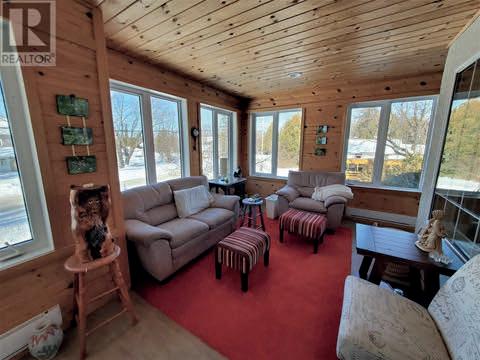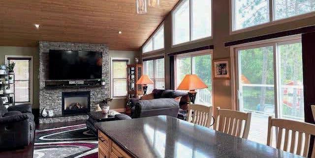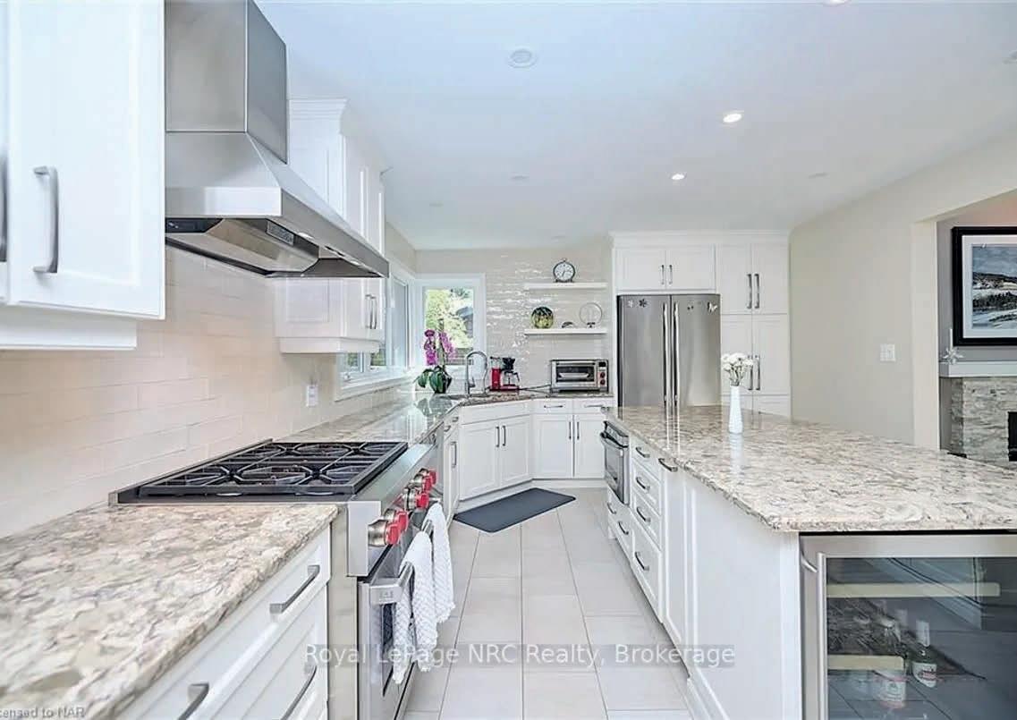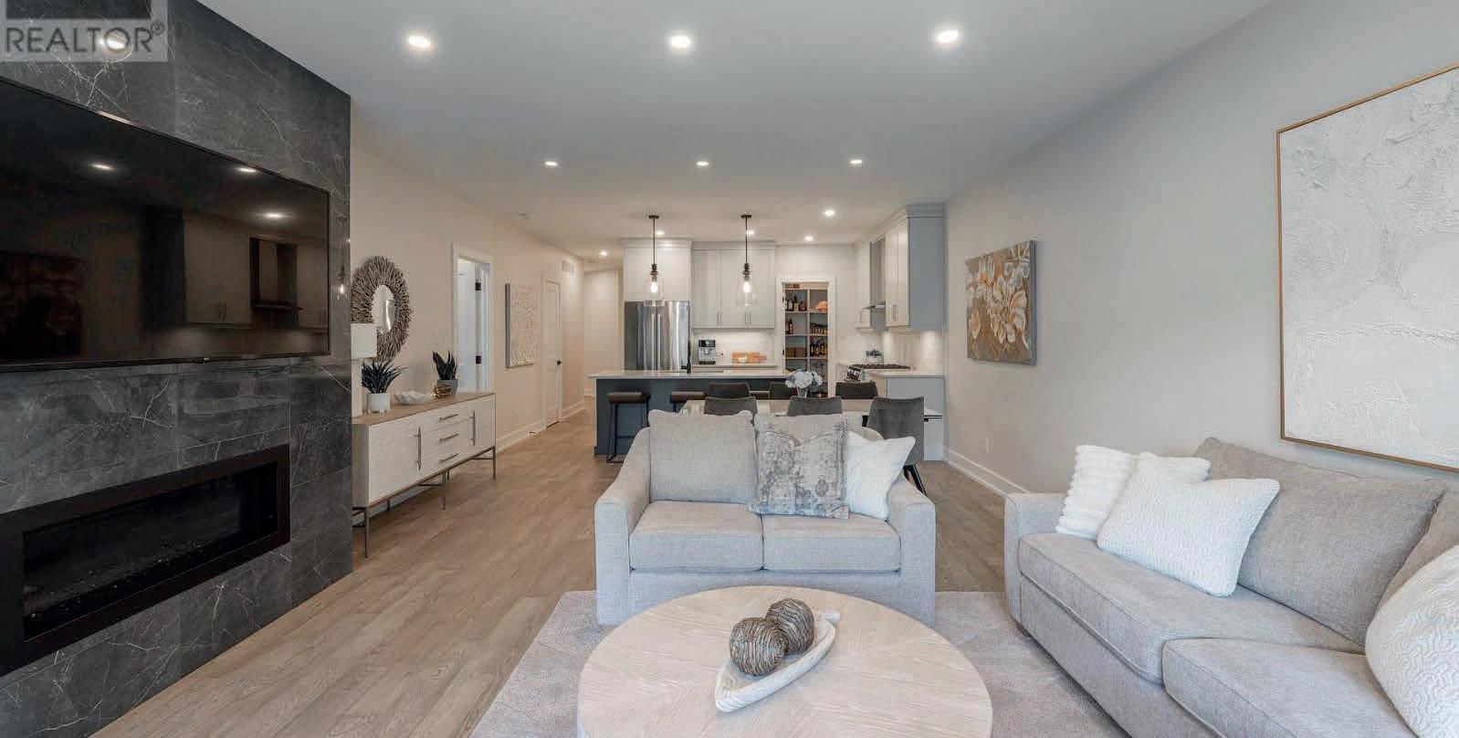 Better than new; this home has been lovingly and meticulously rebuilt from top to bottom with no expenses spared! From the moment you walk in the front door, you will be blown away by the open space and gleaming finishes. The living room features a propane fireplace with floorto-ceiling stone mantle. The custom kitchen is sure to impress the chef in your home, with its propane stove, stainless appliances, custom bar fridge, sprawling island, and marble counters! Perhaps the only room to compete with the kitchen is the Primary Bedroom suite. This room comes straight from a Better Living magazine and features a practical walk-through closet leading into the 5 piece ensuite bathroom. Heated floors, accent lighting, standalone bathtub, custom designed shower and 24" marble tile are but a few of the highlights. The basement is a fully finished oasis as well and boasts two more generous bedrooms, a full bathroom, and tons of storage. If you want to live in luxury on a beautiful lot in the heart of Northern Ontario, this is the spot for you!