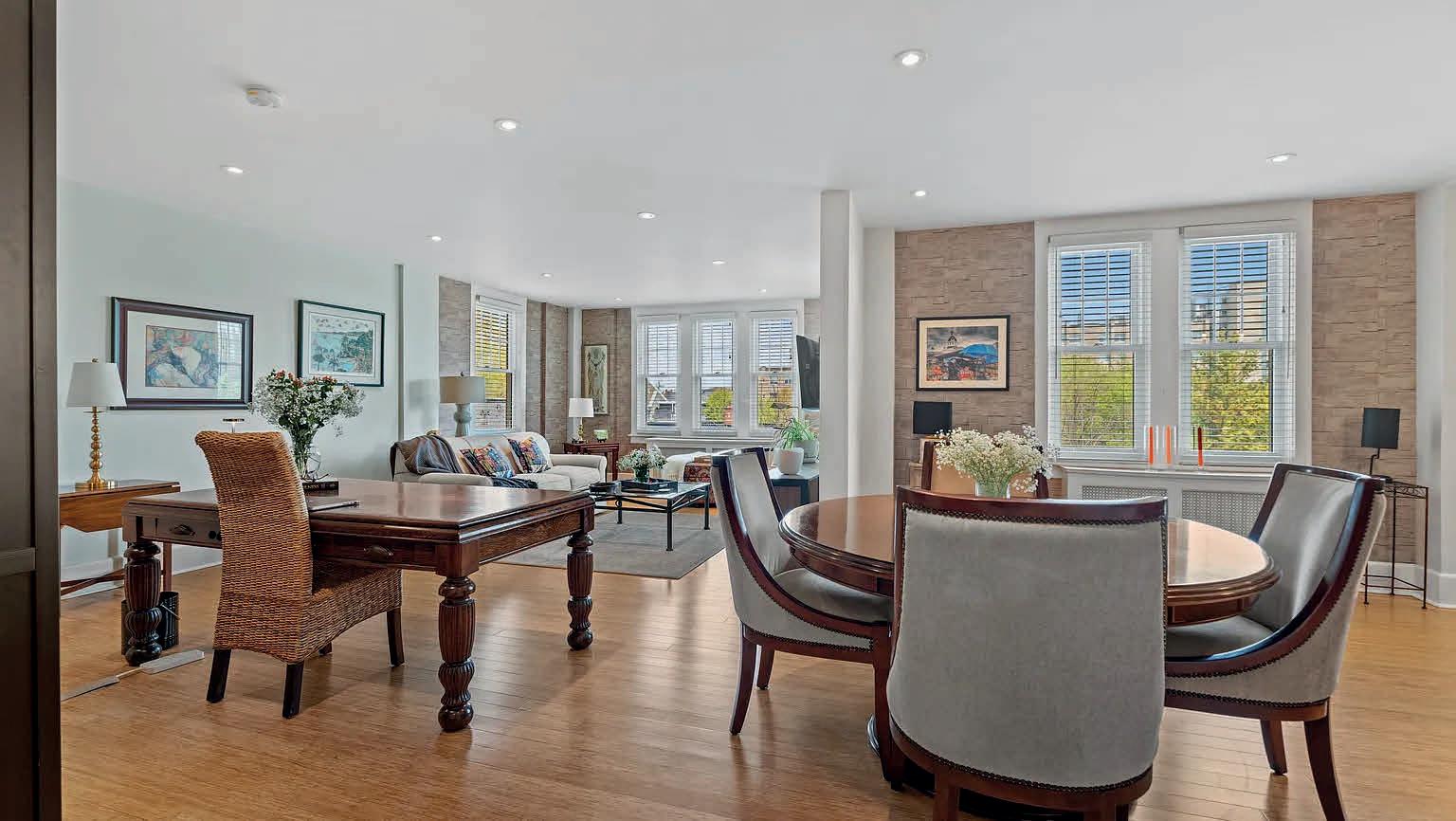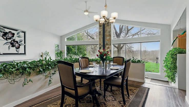 The eat-in kitchen is perfect for casual meals, while the dining room, framed by graceful conservatory windows, sets the mood for elegant dinners and celebrations.