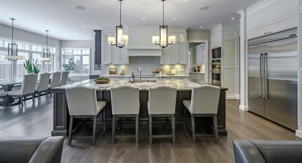 style in the formal dining room for 16, or create culinary masterpieces in the gourmet kitchen with professional-grade appliances and a walk-in pantry. A serene Muskoka Room, a main-floor primary and VIP suite, four upper-level bedroom suites with a loft and kids’ den, and a walk-out lower level featuring two additional suites, a granite fireplace, wet bar, games, and exercise rooms ensure comfort for family and guests alike.