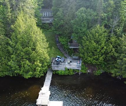 6.3 Acres, 340’ Shoreline w/ sand beach, Rare wet boathouse, 3 bedrooms, 2 baths + Bunkie, Det’d garage, Classic turnkey cottage! $1,275,000