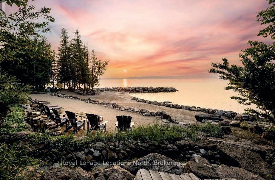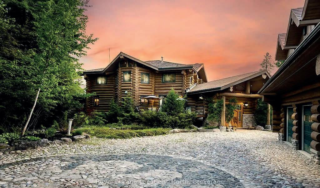 Welcome to one of Canada’s largest log mansions, a Yellowstone of the North that rivals the magnificent log building in the Yellowstone TV series. This breathtaking, one-of-a-kind waterfront estate at the very point of Georgian Bay’s Cedar Point redefines luxury living. Built in 2002 as a private resort, set on 4.37 acres of landscaped grounds with 2 beaches over 412 ft of pristine shoreline.With close to 14,000 sq ft, every detail of this custom-designed home was lavished with uncompromising quality. The main residence features 8 beds, +8 baths, +2nd living quarters with 2 beds, +2 baths. Every room is a statement with soaring ceilings, rich finishes + breathtaking views. Outdoors, this waterfront sanctuary captivates with private sandy beach, cabana, gentle streams + 90-ft stone pier offering panoramic views. Boaters will value an 80-ft seasonal dock at the 2nd, pebble beach. Birders will be impressed to learn that Cornell Lab identified 100+species. At night, gather at the pier under a canopy of stars/luxuriate in the 8-person