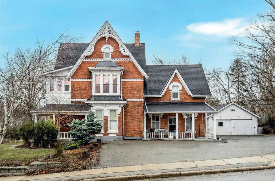 History abounds in this estate type property in Madoc Village. One of the town’s signature residences, the hilltop setting spans across 4 lots, and the stunning landscape runs along 2 town streets. Circa 1860, and built by the Orr family, the unique patterned slate roof was replaced 2 years ago and retains its original charm. The private setting is accessed up a paved drive up to the old carriage house which was transformed into the attached garage with a full loft area offering lots of storage. Original features include baseboard trim, hardwood flooring, a grand staircase and much more. The main level boasts separate formal sitting and dining areas, plus a family room, 3pc bath and laundry. The modern kitchen was updated 8 years ago and boasts a spacious center island with seating and views of the back yard teeming with manicured gardens full of perennials and a locust tree centerpiece. 4 bedrooms on the 2nd level give lots of room for family or guests and has a full bath with a jacuzzi tub. A quiet back deck is a haven for an afternoon of relaxation, or slip over to the inground 14x28 pool with a privacy fence for a dip. Lots of updates but you can still feel the history of 165 years as you walk through each room. A convenient location close to the school, post office, pharmacy, Medical Centre and Foodland. A truly magnificent property inside and out and you will not be disappointed!