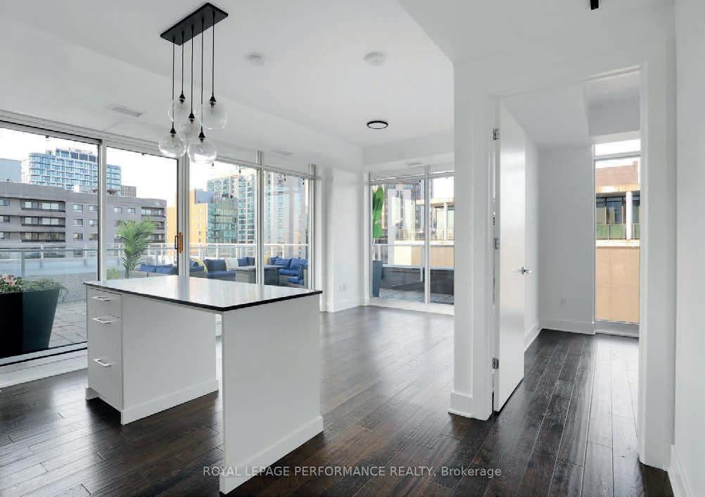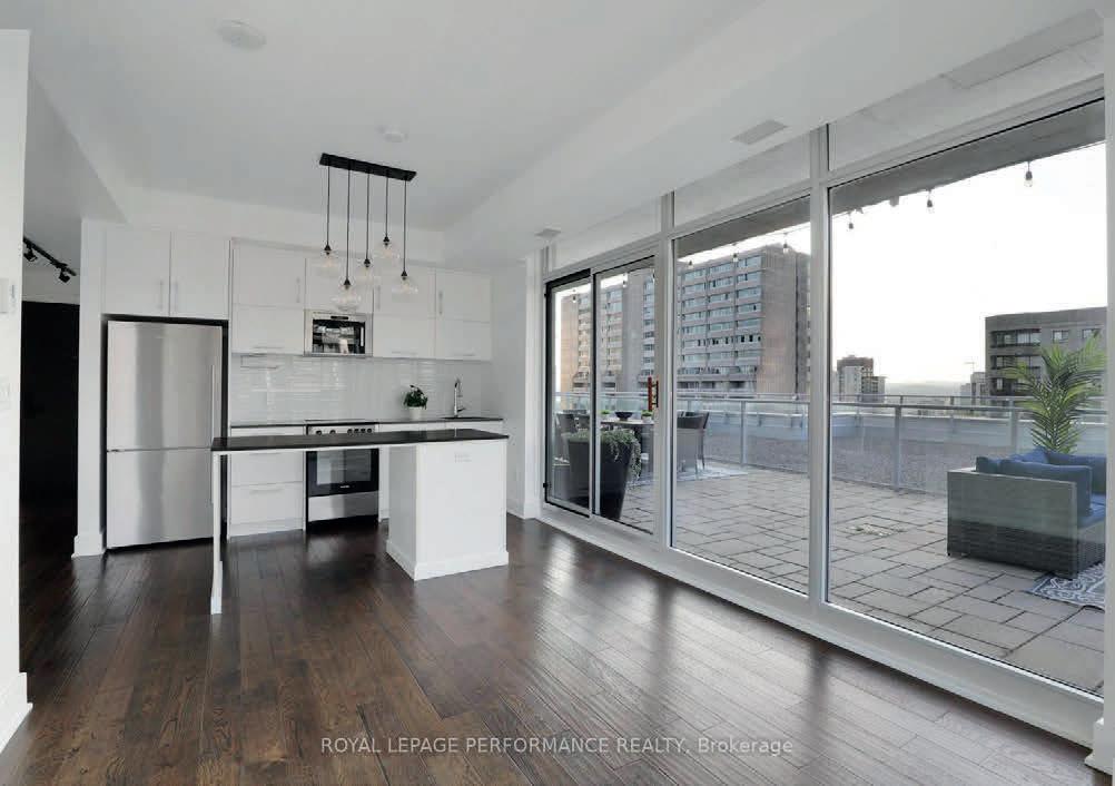 Rich hardwood floors flow throughout the bright, open-concept living space. The sleek, modern kitchen is an entertainers dream, featuring white cabinetry, grey quartz countertops, stainless steel appliances, and a large island that doubles as a prep station and seating for four. Step outside to your private 722 sq ft terrace, an expansive outdoor living space perfect for hosting unforgettable dinners or simply taking in the unmatched cityscape. A breathtaking 270 panorama spanning sunrise to sunset, with floor-to-ceiling windows framing views of Downtown Ottawa, the Gatineau Hills, and the Ottawa River.