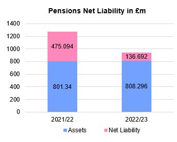 31/03/2021 31/03/2022 31/03/2023 £'000s £'000s £'000s Long-term assets 1,565,506 1,662,531 1,692,679 Current assets 185,583 224,765 108,279 Current liabilities (123,570) (154,959) (130,156) Long-term liabilities (828,984) (812,562) (473,719) Net Assets 798,535 919,775 1,197,083 funded by: Usable reserves 208,998 216,673 209,329 Unusable reserves 589,537 703,102 987,754 Total Reserves 798,535 919,775 1,197,083 Borrowing 276,366 314,123 314,776 Debt to Equity Ratio 34.6% 34.1% 26.3%