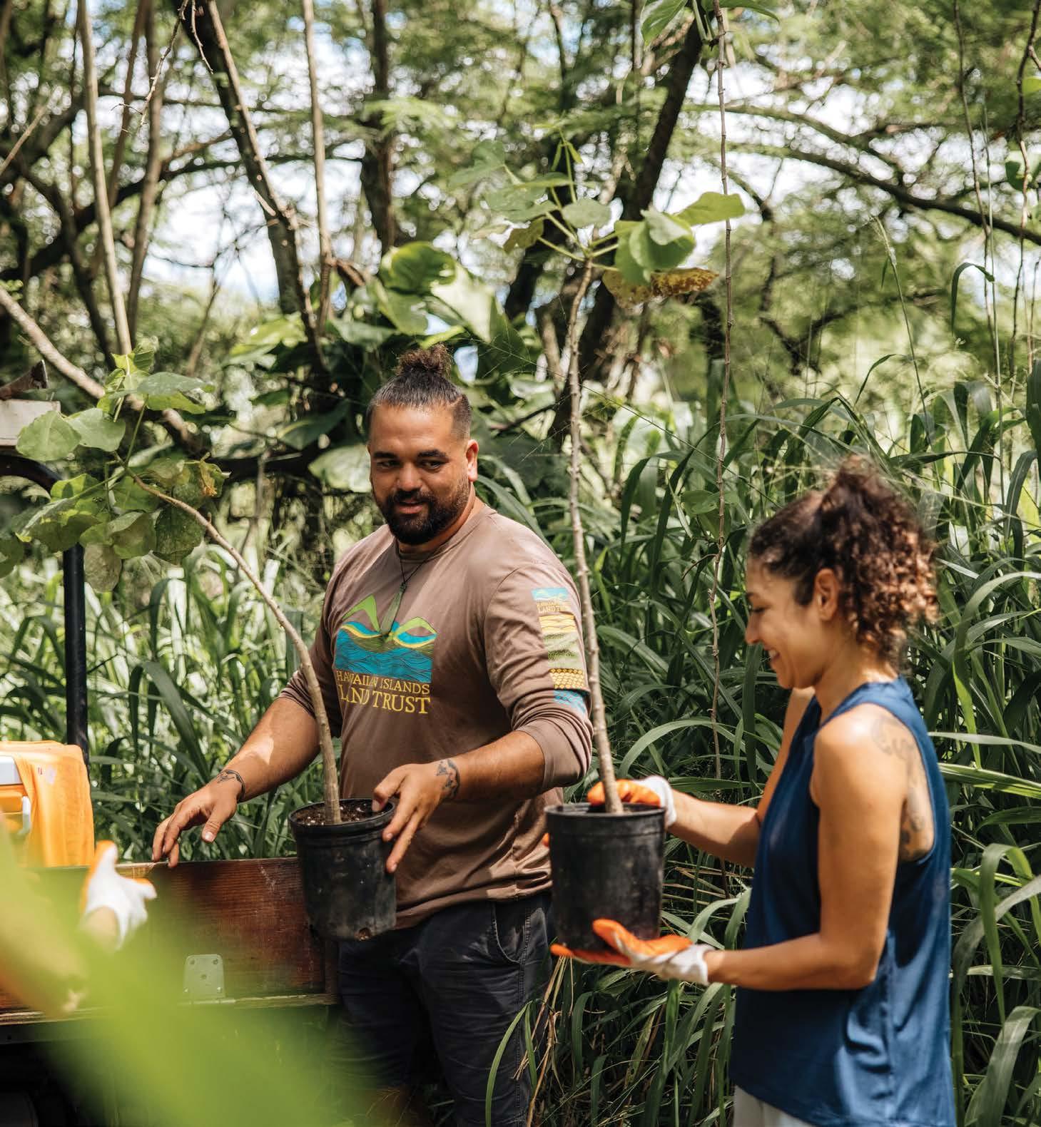 to revitalizing the diverse ecosystems throughout the islands. You can help some of these groups by volunteering time during your visit through the Mālama Hawai‘i program. Volunteering for conservation activities is a great way to deepen your experience while exploring the islands, as these opportunities open the door to extraordinary opportunities on private land. Visit gohawaii.com/ voluntourism to find dozens of volunteer opportunities, ranging from touring and helping at an idyllic animal sanctuary, hiking and serving with the Sierra Club Maui, doing dawn patrol for sea turtle nest watch on South Maui beaches through the Hawai‘i Wildlife Fund or volunteering in lo‘i kalo (taro farm). Most groups will provide training, if needed. Only with awareness and respect can we show our kuleana (responsibility) to the environment.