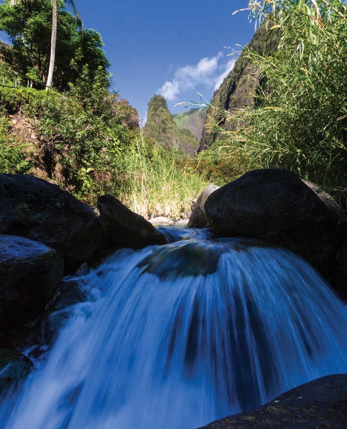 Luxury resorts, enticing boutiques and unique dining experiences share the landscape with charming small towns, whitesand beaches and a legendary history that unfolds across the closely grouped islands of Maui, Moloka‘i and Lāna‘i, collectively known as Maui Nui (Greater Maui).