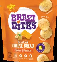 Crujientes por fuera, esponjosos por dentro. Inspirados en el pao de queijo brasileño. Son pedacitos de pan de queso brasileño con queso cheddar y parmesano, hechos con harina de tapioca. Son 100% naturales y libres de gluten, nueces, soja, azúcar y grasas trans. No contienen preservativos ni ingredientes artificiales.