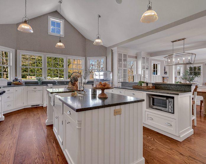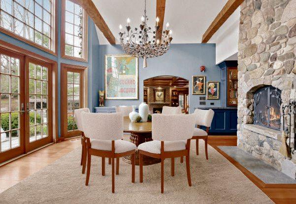 “[It]alsohas an extraordinary kitchenthatopens to a largeseating anddiningarea, with an impressive two-sided stone fireplaceand doorsthatleadtoanoutdoor fireplace andseating area overlookingthe orchards.Thereare two primarysuites—aspaciousone with an office on the first floor andanother on thesecond floor,”Claroni added.