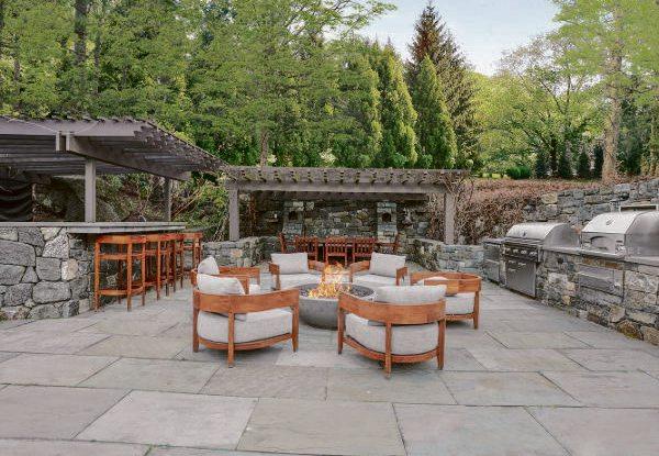 Luxury homebuyers in search of aproperty in FairfieldCountyright nowwill find a handfulofoptions with outdoor kitchens poised forsummersoirées.For example, there’sthe magnificent brickGeorgianRevival colonial at 202 Round Hill Road in Greenwich. Builtin1994 on 2.53 acres, the five-bedroom home is complemented by formal gardens,a pool anda spacious terrace to accommodate severalseating areas. Theproperty is currently offeredtothe market for$6.795 million.