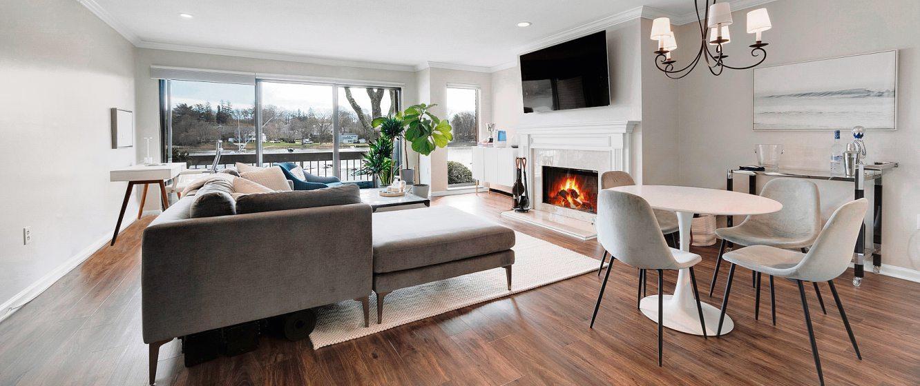 Themoderncompound at 45 BinneyLaneinOld Greenwich is an exceptional1.07-acre waterfront property, custom-built in 2020. It wasthe 2021 winner of aHOBI Award, comprising an eight-bedroom main house, complemented by aguesthouse,boathouse,outdoor terraces, gardens,pool anddeep-water pier “45BinneyLaneisa modern housedesigned by Joeb Moore, butithas warmth andfeelsverywelcoming,” accordingtoco-listingagent Amanda Miller, aRealtor with Houlihan Lawrence’sGreenwichbrokerage.“What’s idealabout 45 Binneyisthe varietyofaccommodations, whereevery guestcan enjoy privacy—with ensuite bedroomsand aseparateguesthouse—while at thesame time feelingunitedinthe entertainment spaces and outdoor gatheringspots